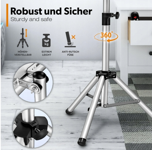 - Підставка з регулюванням висоти в діапазоні прибл. 110-180 см і можливістю повороту на 360°