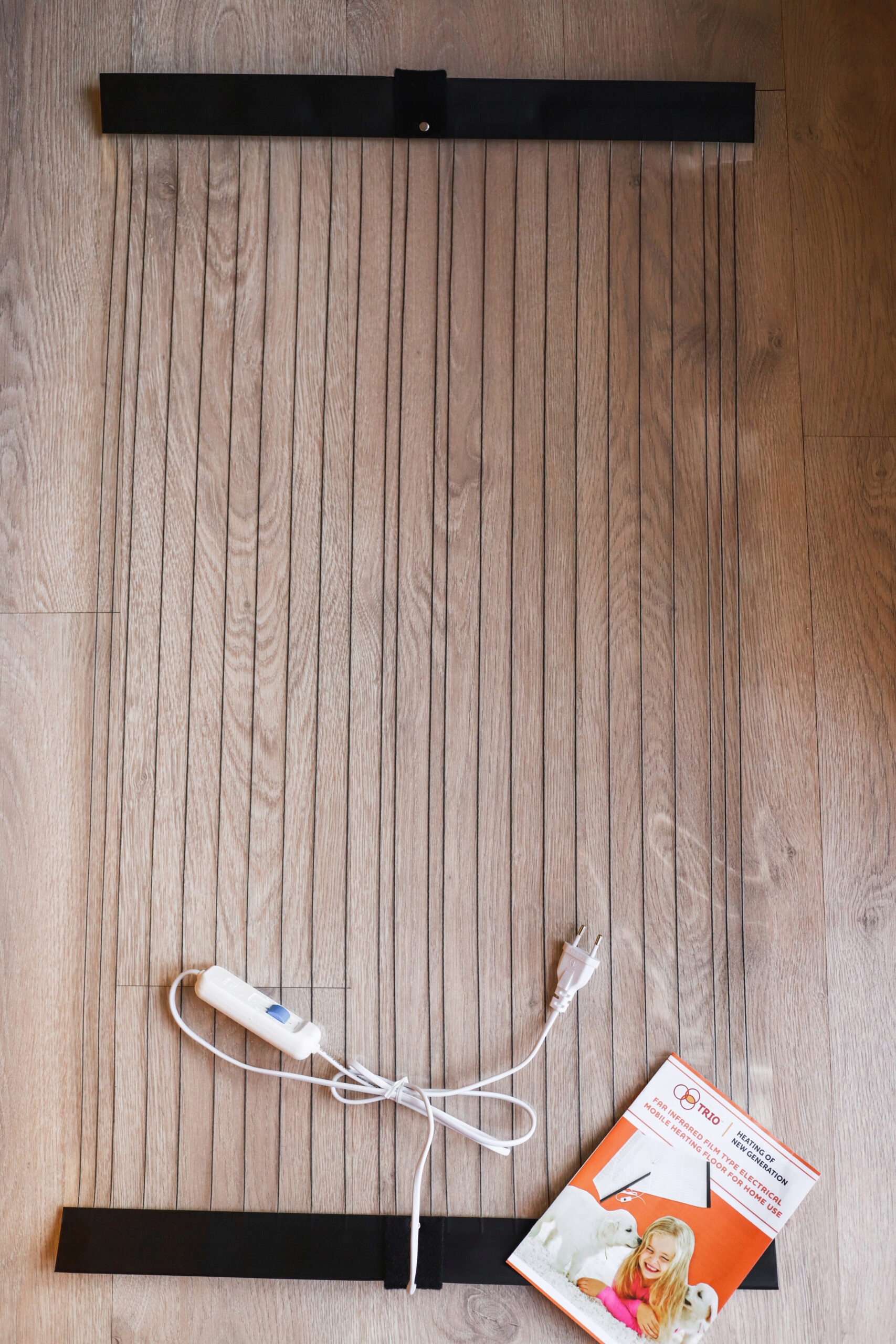 Просто покладіть обігрівач під килим, підключіть його до розетки та виберіть один із двох режимів нагріву. Регулятор розташований на кабелі.