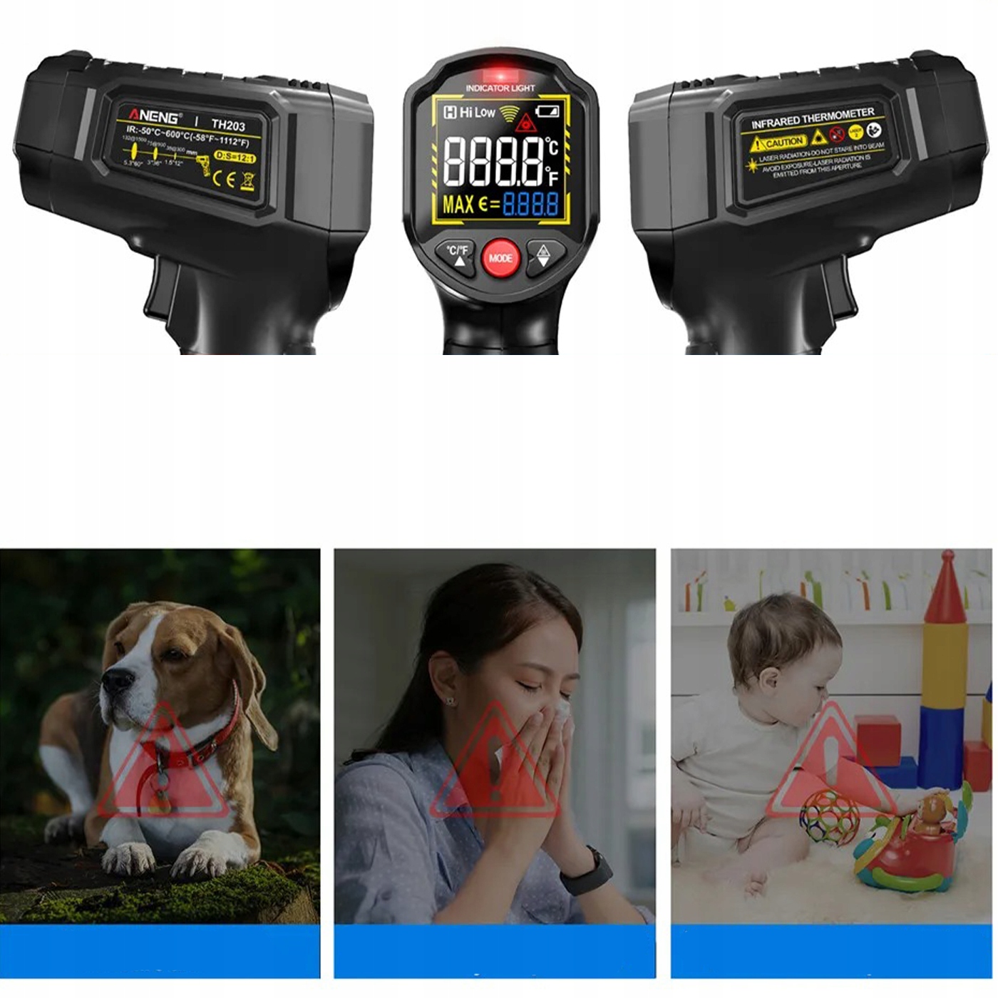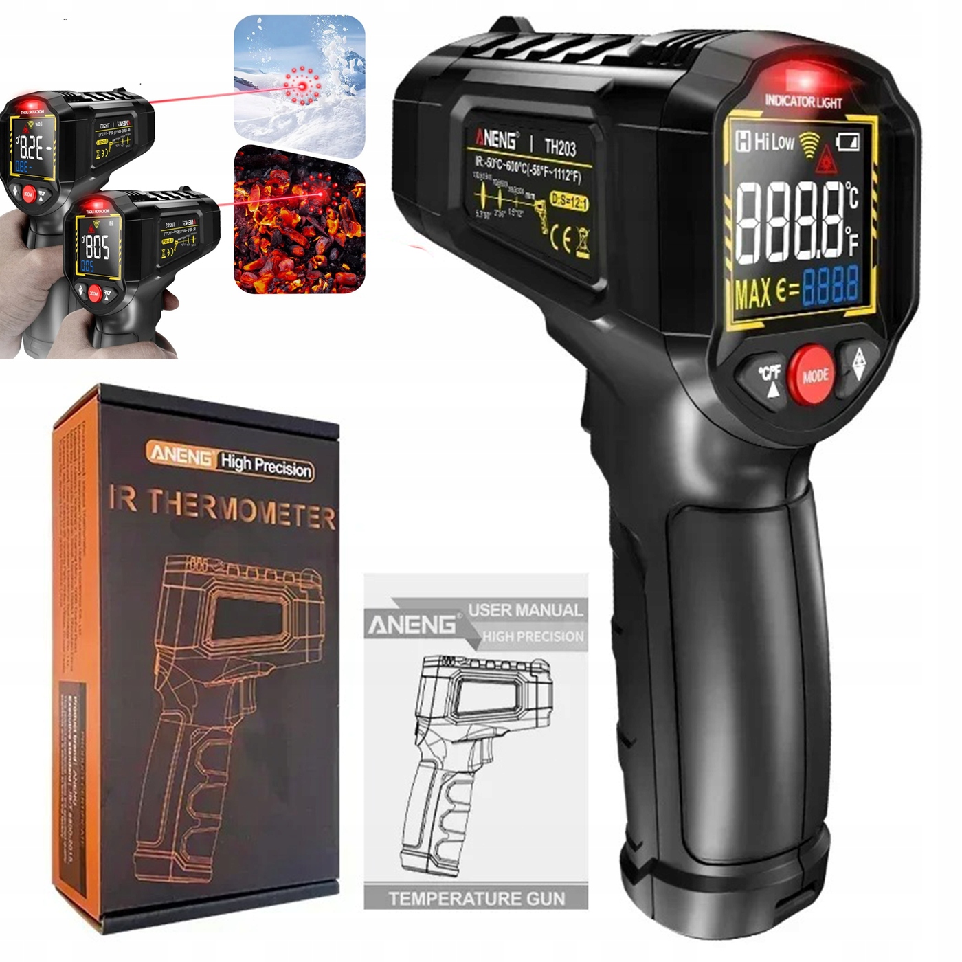 ⭐️ ПРОМИСЛОВИЙ інфрачервоний термометр (пірометр) від -50°C до 600°C - безконтактний пістолет із зворотним VA екраном, точність D:S 12:1, лазерне позиціонування - вимірювання поверхонь, двигунів, труб! ⭐️