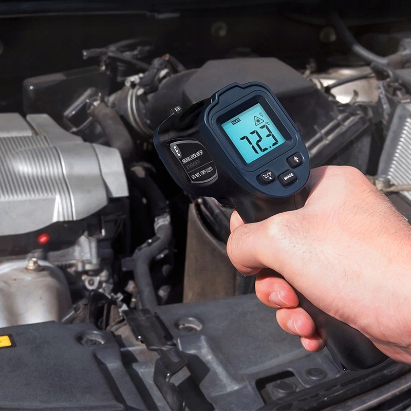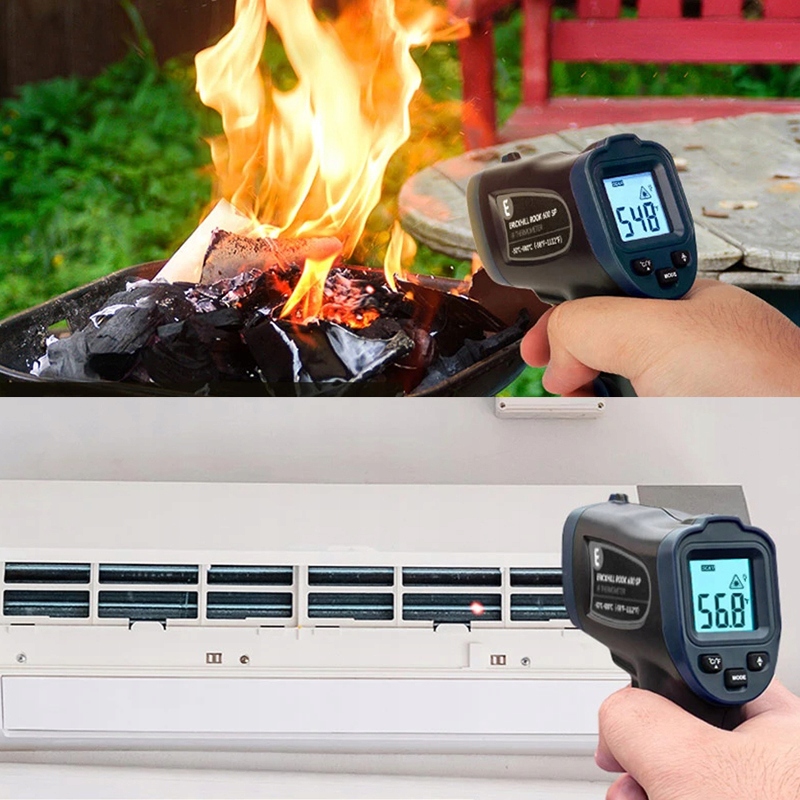 Просто спрямовуйте інфрачервоний термометр на поверхню об'єкта, утримуйте тригер і сповільнюйте, щоб отримати показання температури в прямому ефірі в діапазоні від -58 ° F до 1112 ° F (від -50 ° C до 600 ° C). Функції включають функцію Max/Hold Data, перемикач одиниці (f/c), низький рівень акумулятора та 12-секундне автоматичне вимикання, щоб продовжити термін служби акумулятора.
