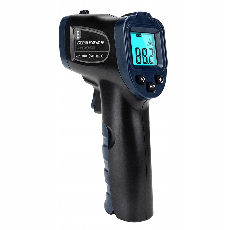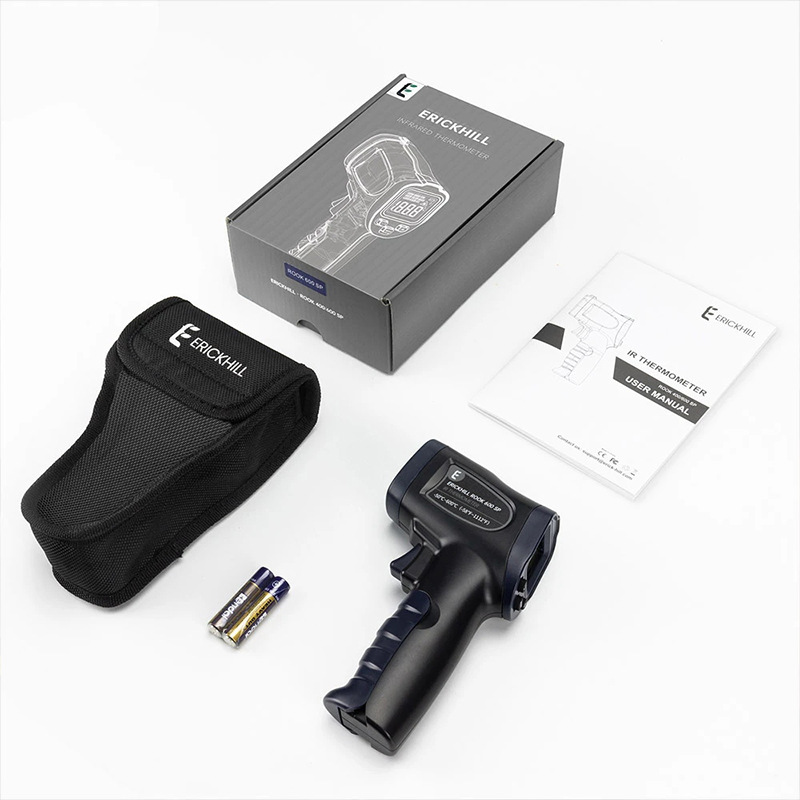 Ерікхілл -пістолет використовує датчики високої якості для вимірювання температури за 0,5 секунди. Він пропонує точність вимірювання до ± 1,5%. Співвідношення відстані до точки 12: 1 дозволяє вимірювати цілі з більших відстаней.