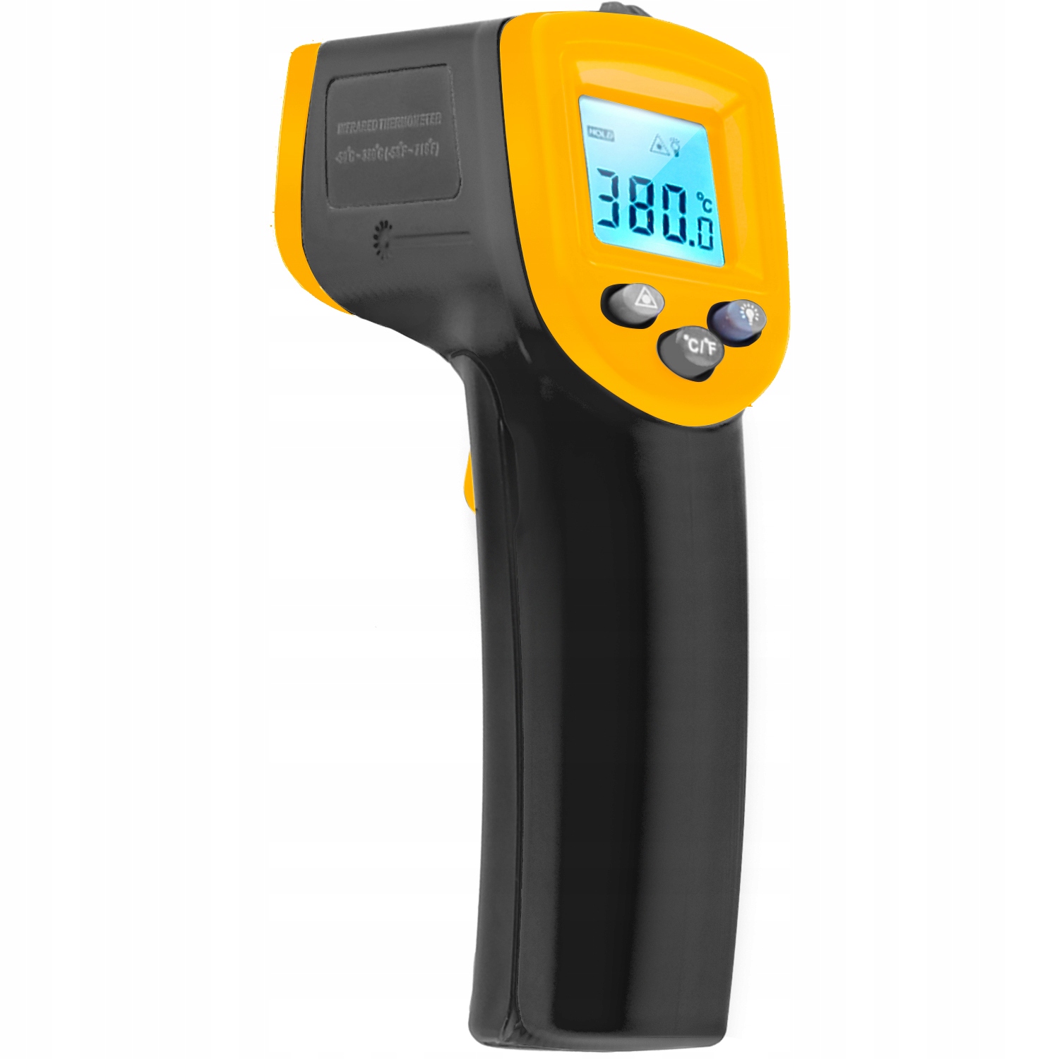 - ВИМІРЮВАННЯ - вимірювач - це вимірювальний прилад, який використовується для вимірювання високих температур, часто без необхідності безпосереднього контакту з об'єктом, що перевіряється. Це тип термометра, спеціально розробленого для точного вимірювання температури у високих діапазонах, які можуть перевищувати вимірювальну здатність традиційних термометрів. Все вимірювання займає півсекунди або поки не буде відпущено тригер, результат відображається на чіткому РК-дисплеї з підсвічуванням.