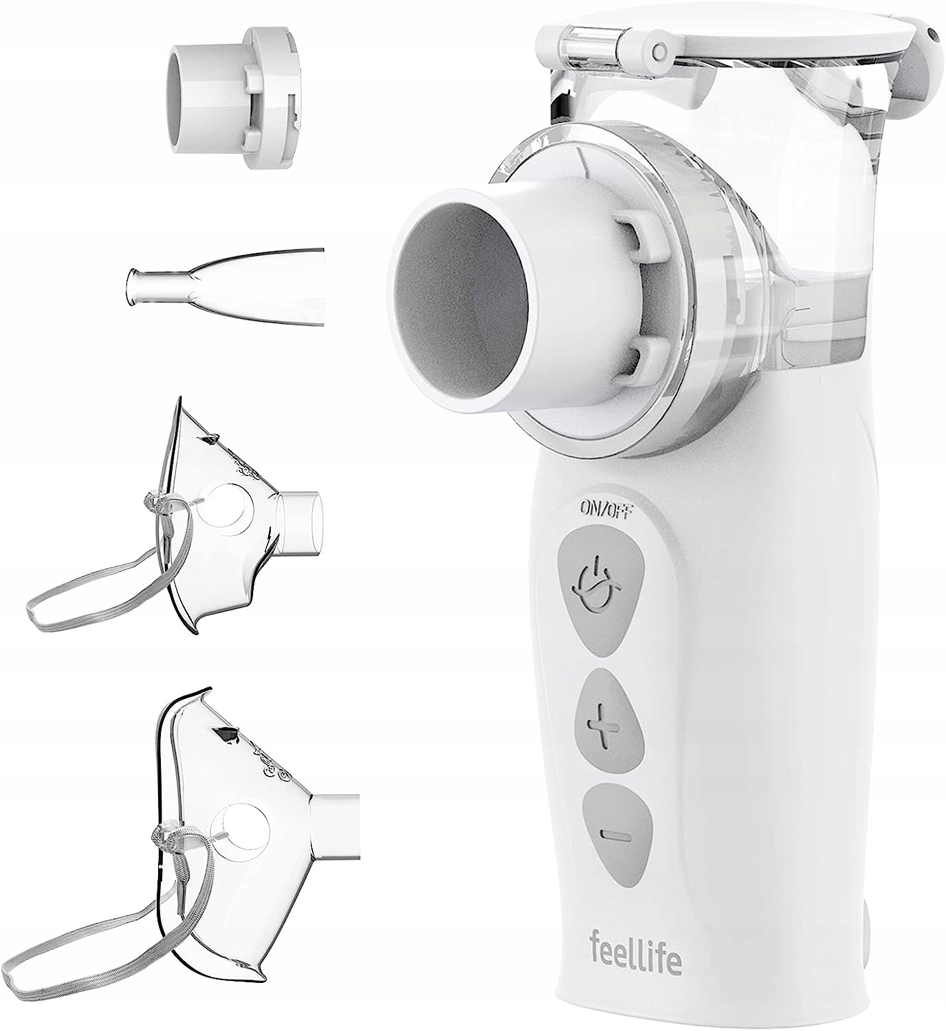 автоматичне вимкнення через 10 хвилин. Оснащений однією маскою та одним мундштуком. Невеликий розмір означає, що він поміститься в будь-яку сумку, а вбудована акумуляторна батарея робить його ідеальним для подорожей і подорожей.