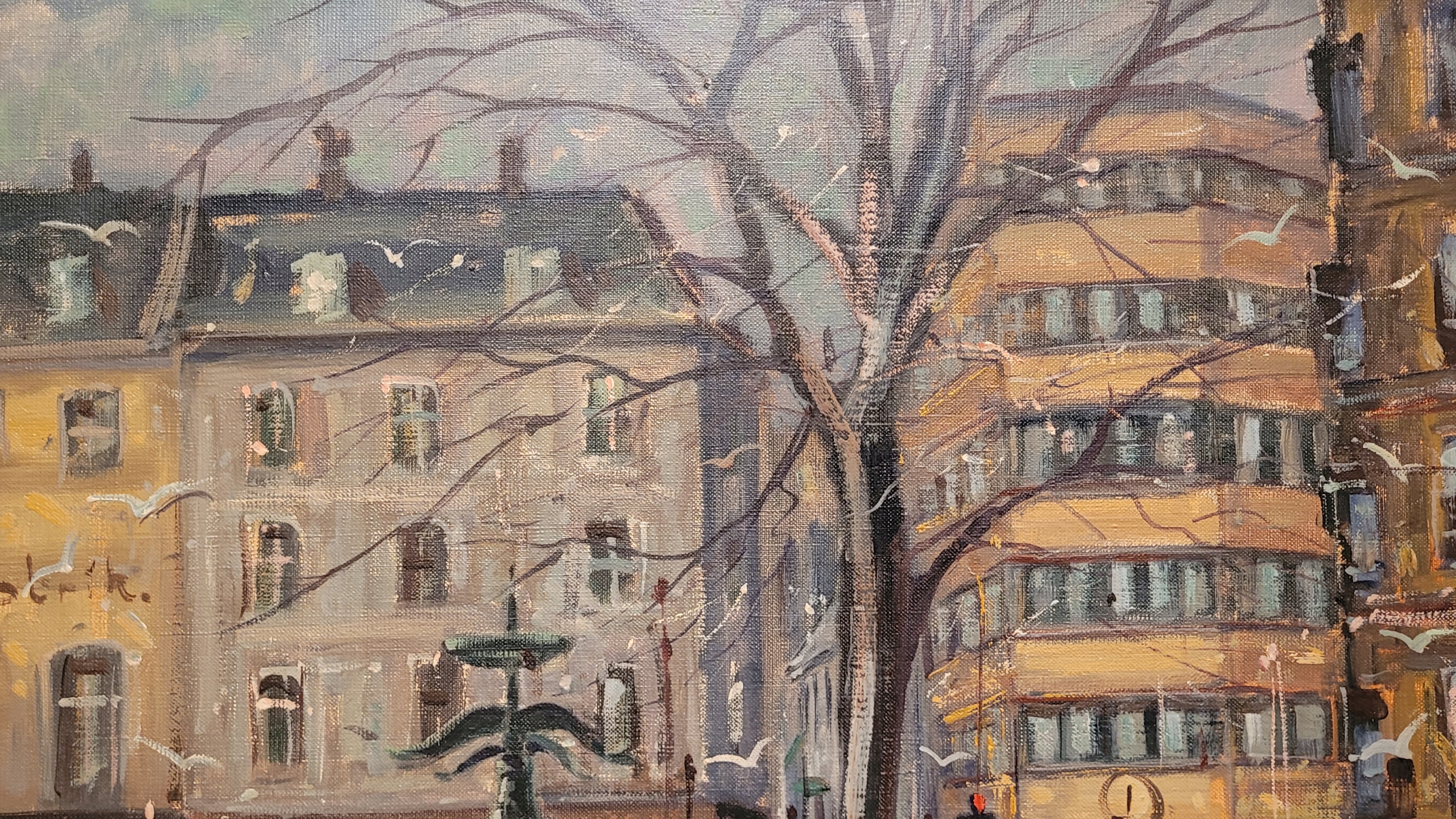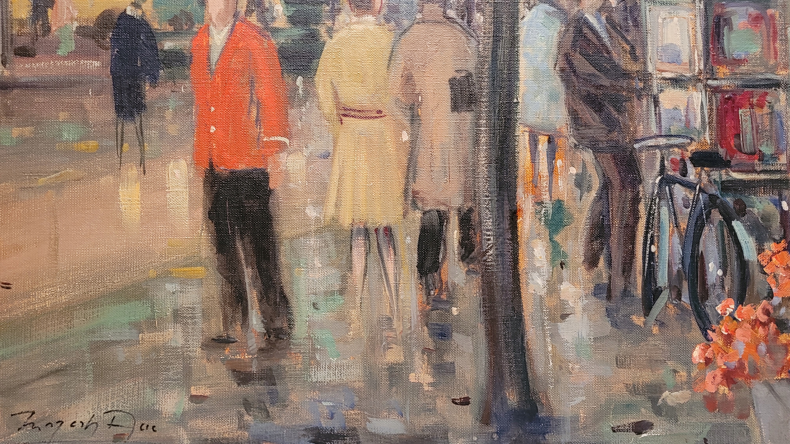 ІНГОЛЬФ ДУЕ (1912 - ) - "ВУЛИЧНА СЦЕНА", красива картина маслом.