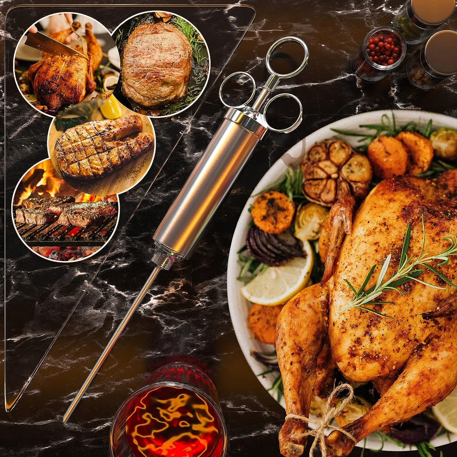 🔷🔷 60 мл шприца з нержавіючої сталі: велика ємність для повного маринації одразу. Використовуючи маринаючий шприц, ви також можете вводити рідке масло, ароматизовані олії або дрібно нарізані трави безпосередньо в м'ясо.