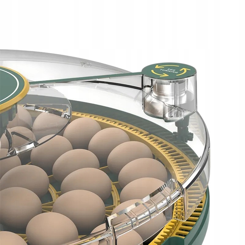 - Автоматичне обертання яєць: двигун з поворотним механізмом забезпечує повне обертання яєць кожні 2 години, моделюючи природні умови інкубації.