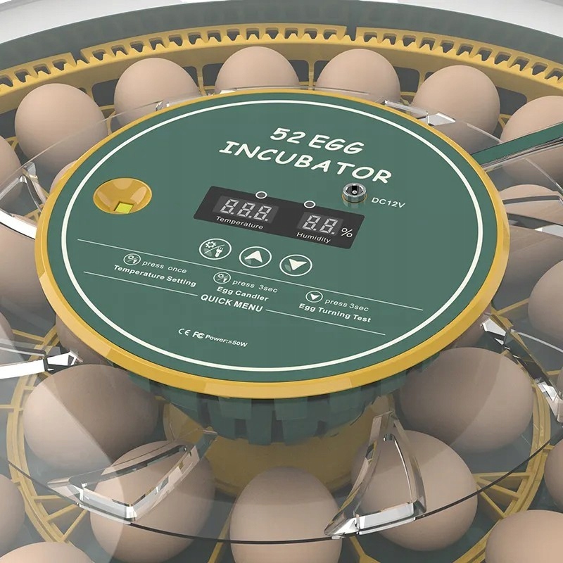 Професійний інкубатор для вилуплення до 52 курячих яєць. Оснащений автоматичним регулюванням температури та вологості, автоматичною функцією обертання яєць та побудованим -в овоскопі, що забезпечує оптимальні умови для розвитку ембріонів.
