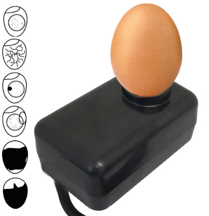 Разом з інкубатором ви отримуєте овоскоп, який дозволяє перевірити після тижня інкубації, які яйця запліднені, а які ні. Разом з овоскопом ми додаємо інструкцію з експлуатації, завдяки якій ви можете легко інтерпретувати зображення рентгенівського яйця.