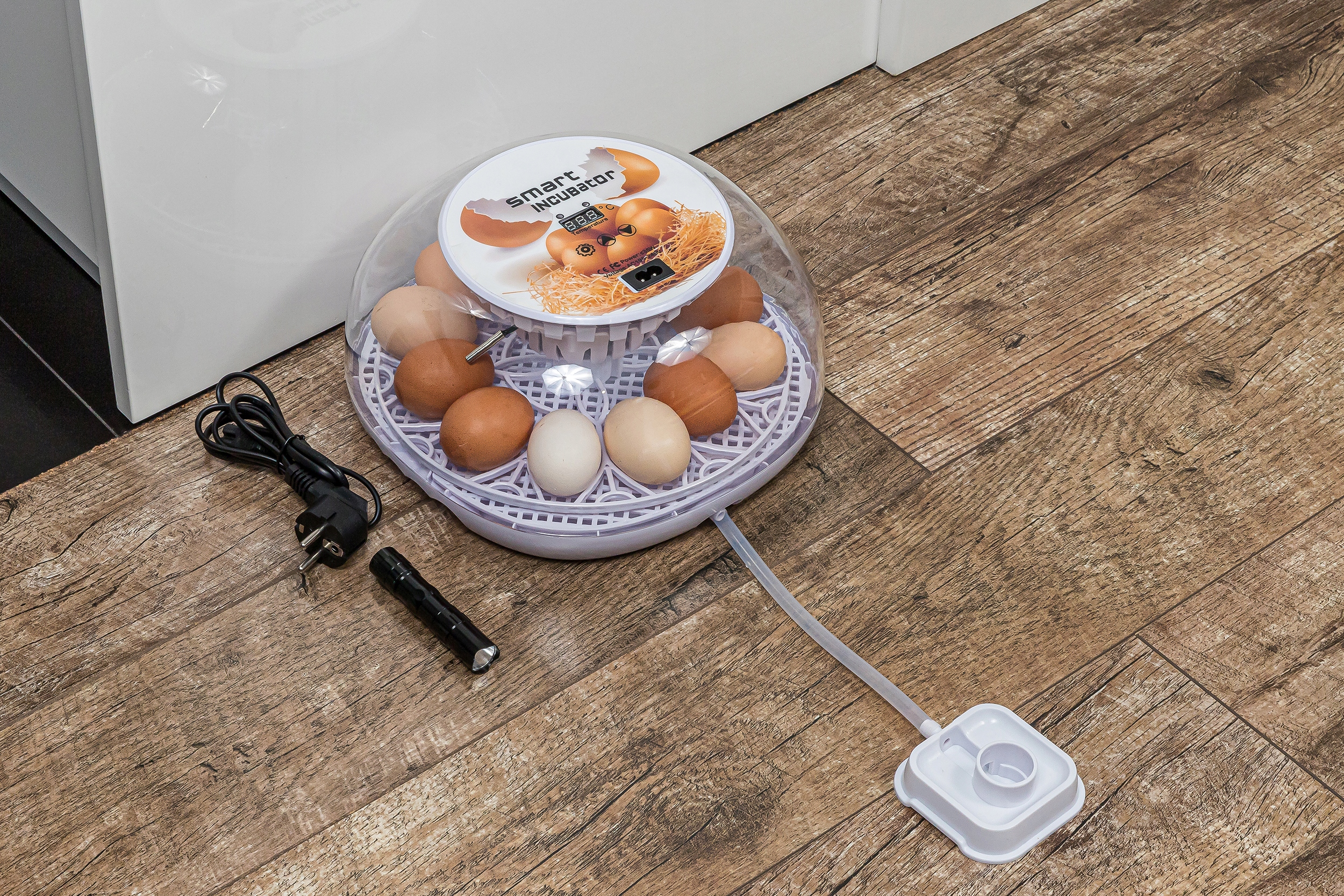 Професійний інкубатор призначений для висиджування максимум 12 курячих яєць. Інкубатор оснащений автоматичним цифровим контролем постійної температури.