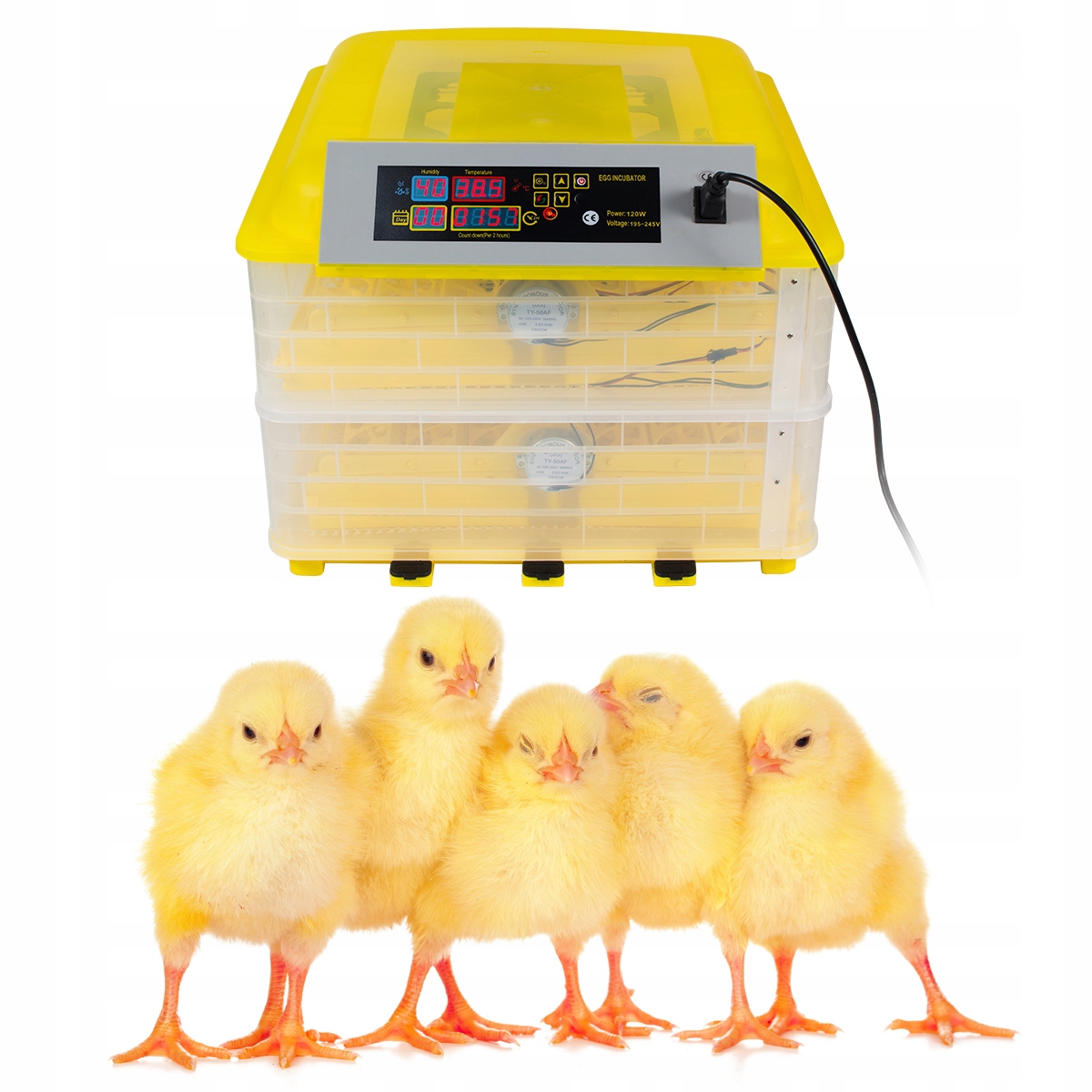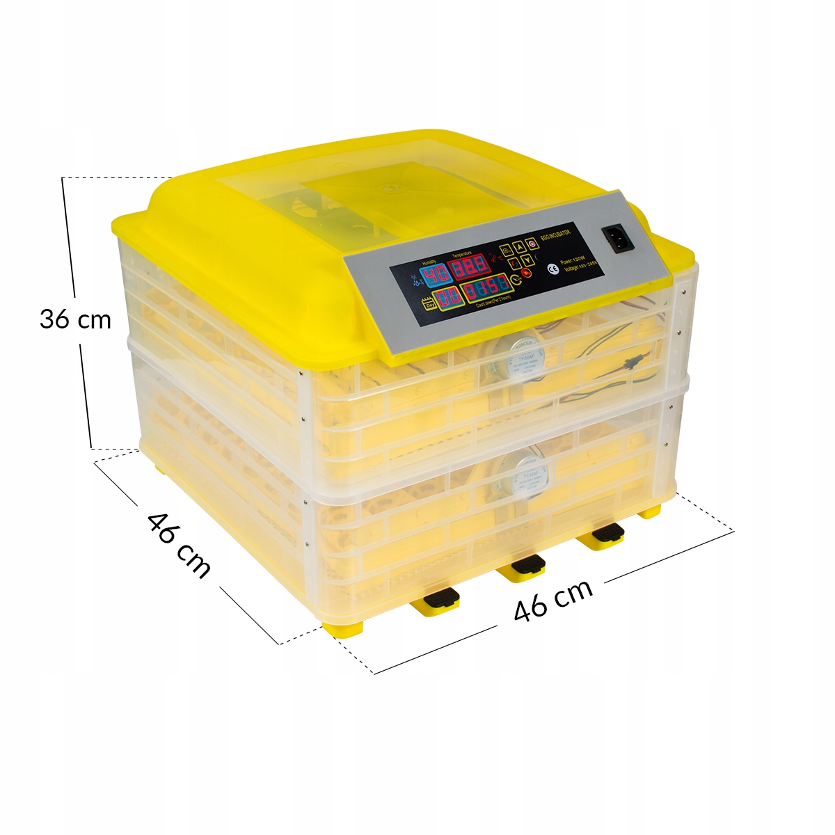 Вам потрібен інкубатор, який вміщуватиме велику кількість яєць і при цьому не займатиме багато місця? Пропонований нами пристрій має двоповерхову конструкцію, тому може одночасно вмістити до 112 яєць.