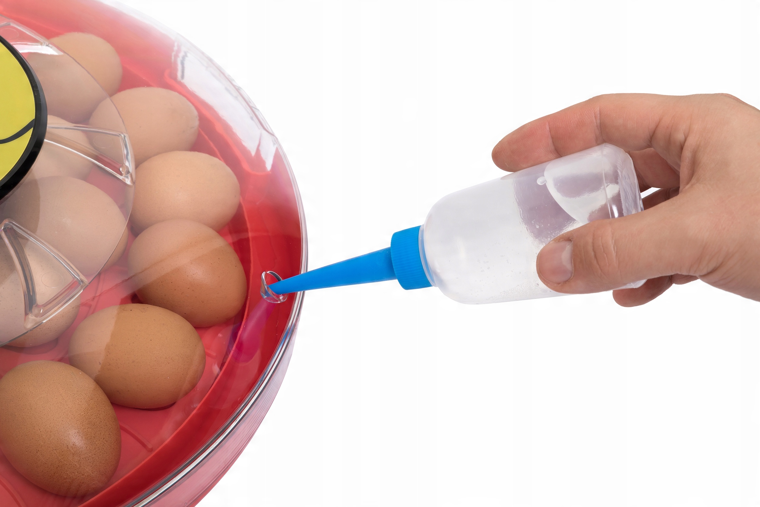 Щоб підтримувати потрібну вологість всередині інкубатора, необхідно додавати воду всередину інкубатора. Цей набір постачається з БЕЗКОШТОВНИМ диспенсером для води, щоб полегшити його застосування.