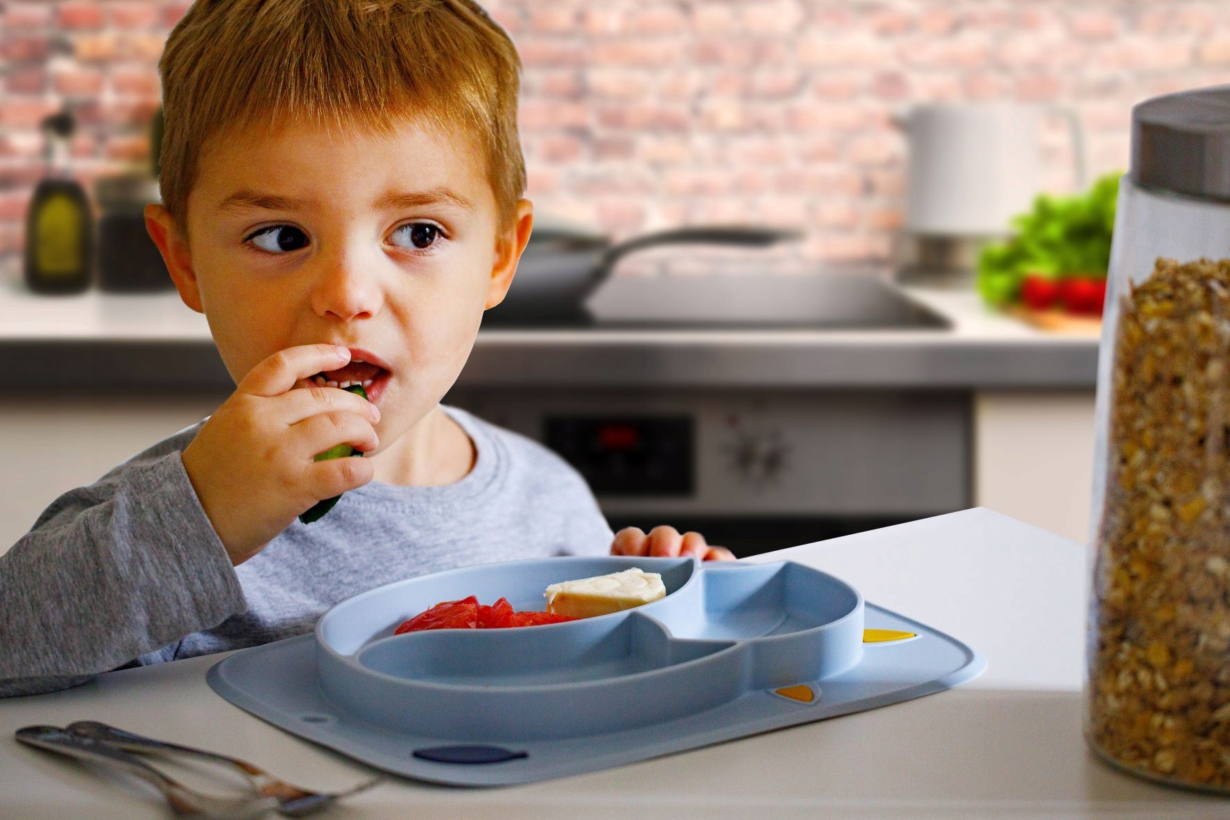 Тарілка, завдяки силіконовій основі, міцно прилипає до гладкої поверхні і не рухається на стільниці.
