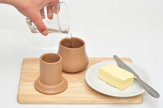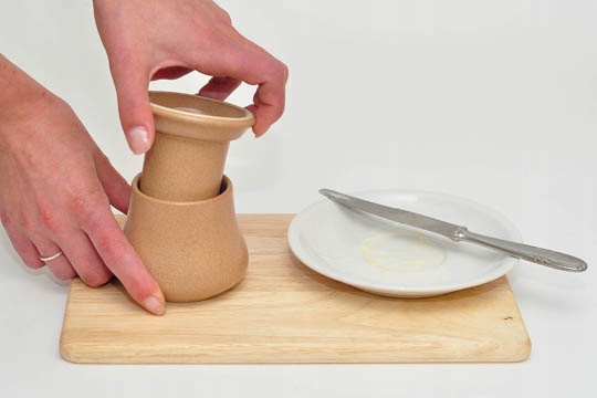 Унікальна структура маслянки завжди підтримує масло в ідеальній консистенції для намазування, ізолюючи його від зовнішнього тепла та охолоджуючи масло за допомогою води на дні посуду. Завдяки цьому смак і свіжість захищені герметичною закупоркою, а масло тривалий час зберігає свої смакові властивості і завжди готове до вживання. Використання нашої маслянки усуває такі проблеми, як масло, яке тане в теплі дні, або занадто жорстке масло, щоб намазати його на скибку хліба. Крім того, це подовжує час його зберігання, не користуючись холодильником!