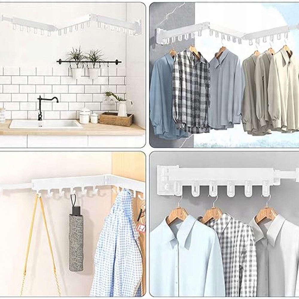 🧳 Розкладна настінна сушарка виготовлена з високоякісного алюмінію, покритого захисним шаром від іржі та корозії. 18 вішалок з двостороннім обертанням дозволяють легко сушити білизну в різних кімнатах! 🏠👚