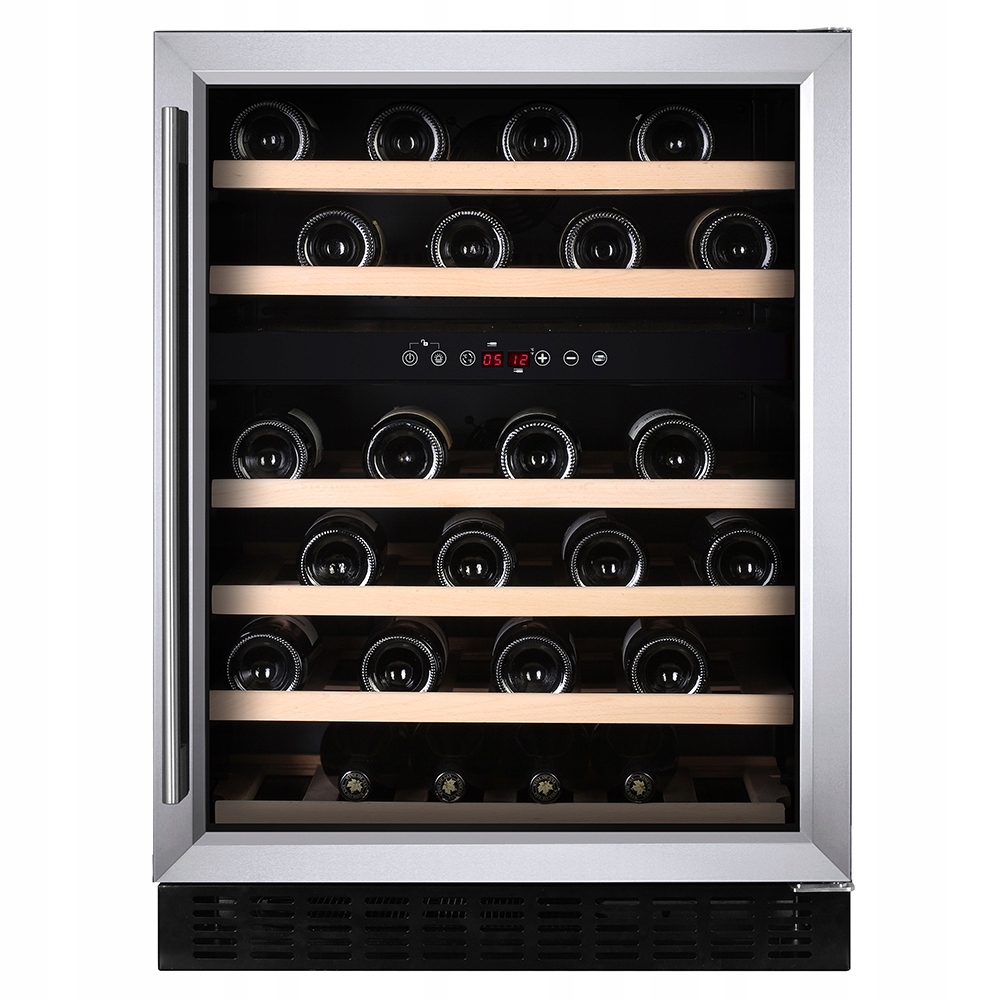 Невелика винна шафа із серії Premium для інтеграції на кухні. Винна шафа має передню частину з нержавіючої сталі, подвійні температурні зони (5-12 °C, 12-20 °C) місткістю до 46 пляшок.