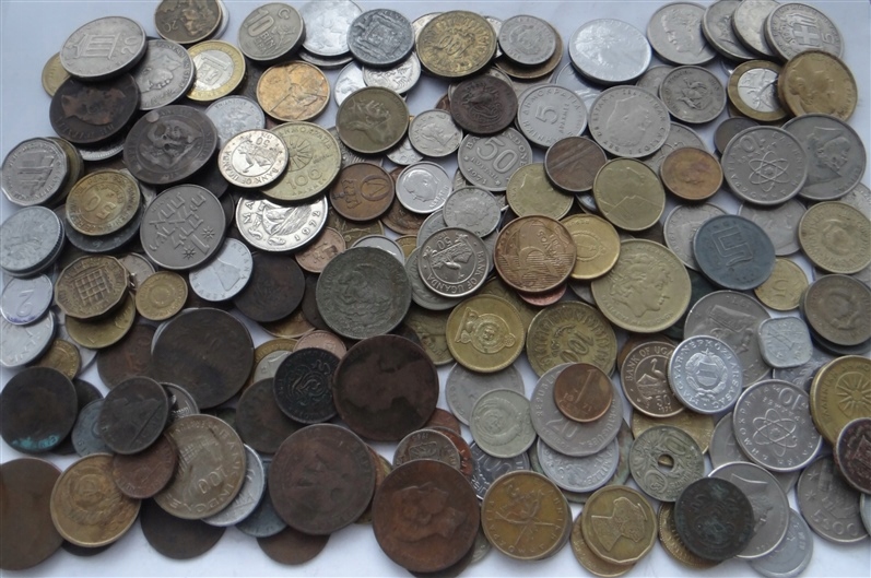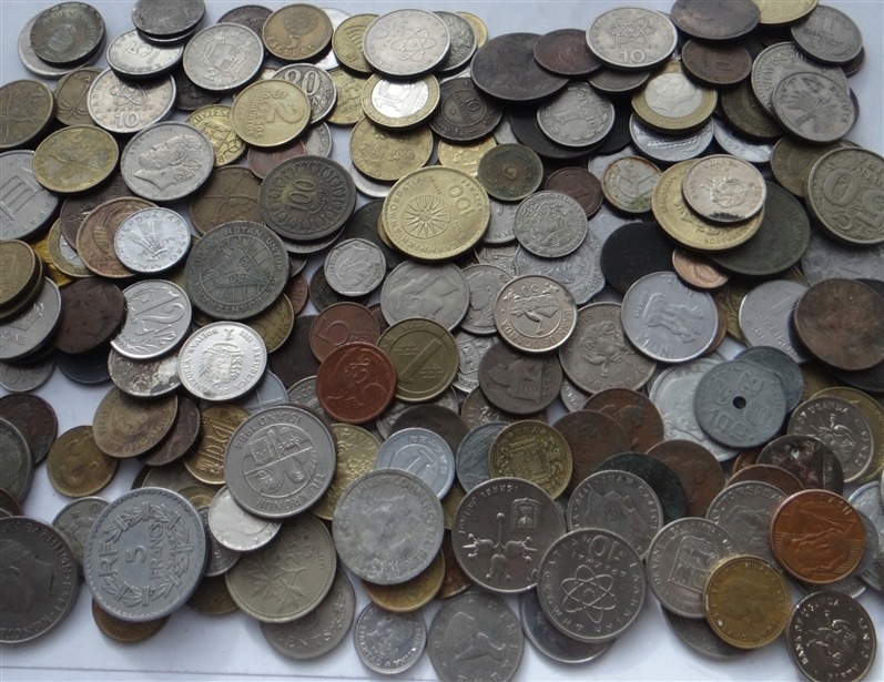 1 кг (1 кілограм) іноземних, екзотичних і довоєнних монет до 1950 року.Кожен кілограм містить кілька десятків/кілька сотень монет.