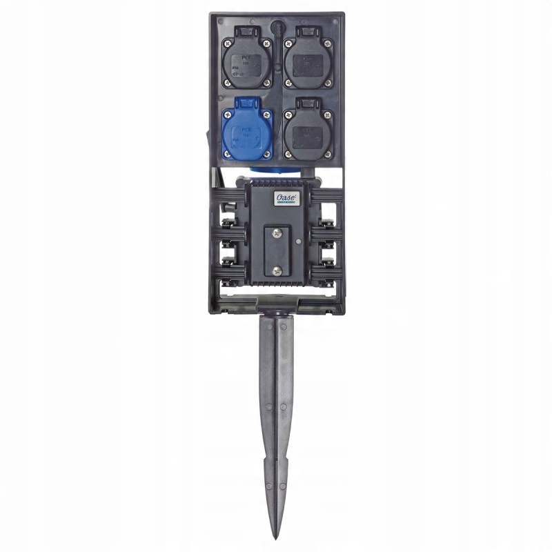 Oase InScenio FM-Master EGC Home - розетка з дистанційним керуванням, придатна для встановлення будь-де в саду. У модель входять розетки: постійна 1 x 220-240 В, увімкнення/вимкнення максимум 2000 Вт, 2 x 220-240 В і 1 x максимум 40-320 Вт. кришка для захисту від бризок води. У комплект не входить кабель.