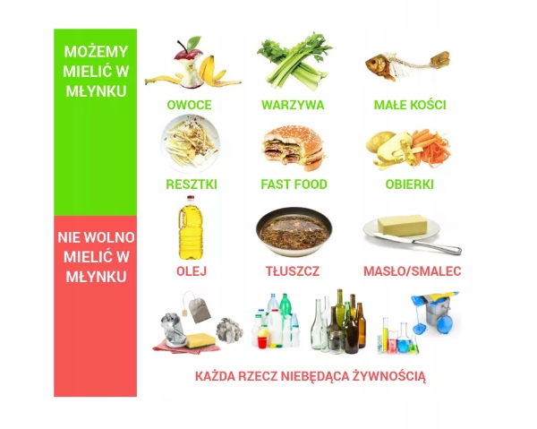 - Допомагає позбутися їжі, яку не можна компостувати