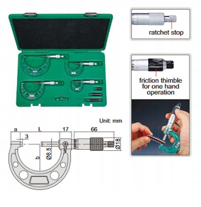 INSIZE Набір мікрометрів 0-100 мм 4 шт. 3203-1004A