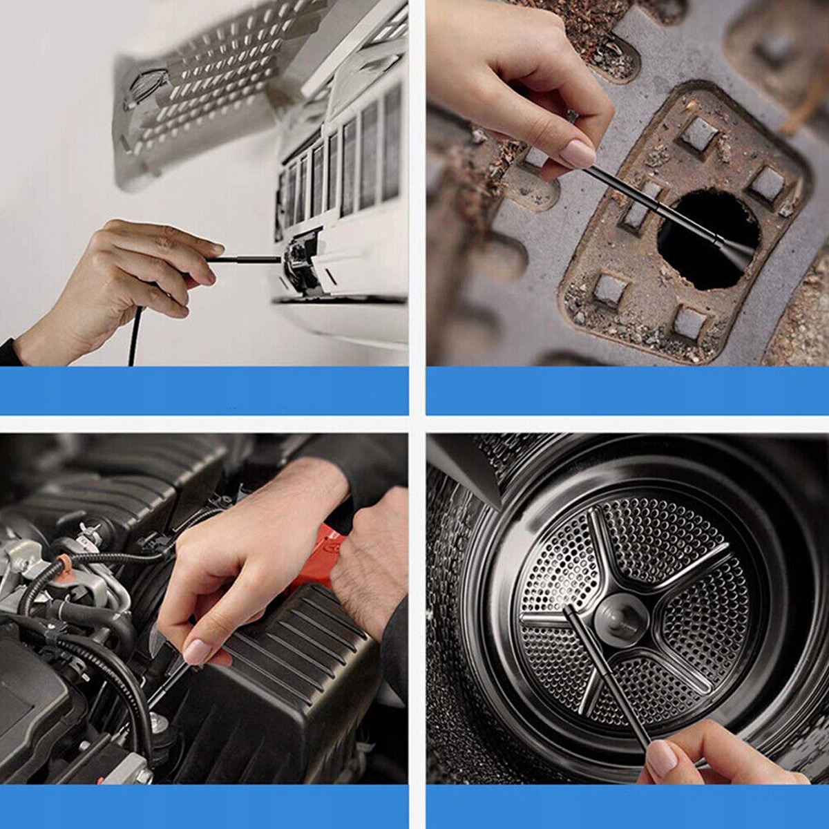 5. Напівпрофільний та водонепроникний об'єктив IP68: напів -рискова камера для перевірки кабелів довжиною 2 м може бути швидко розроблена та згорнута, що полегшує роботу. Запечатаний спеціальним клеєм, стійким до корозії та зносу, завдяки якому ця ендоскопічна камера може легко витримати погане підводне середовище. Високодоступне мідне ядро: використання високоякісного мідного дроту, довговічна та стабільна передача сигналу.