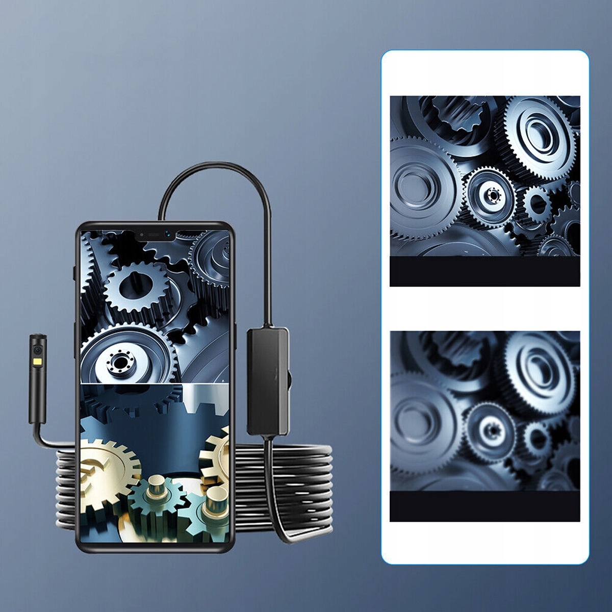1. Подвійний об'єктив, подвійний дисплей: оснащений подвійною камерою, забезпечує передній і бічний кут перегляду, подвійний дисплей на одному екрані, щоб ви могли освоїти більше деталей. Три в одному інтерфейс: інтерфейс трьох в одному (USB-A 2.0, Micro USB та USB Type-C) забезпечує безпроблемне використання та більшу сумісність. Сумісний з різними пристроями, такими як мобільні телефони/планшети з Android, настільні комп'ютери/ноутбуки з Windows тощо. Слід пам’ятати, що він не сумісний з Apple iOS (iPhone/iPad/Mac).