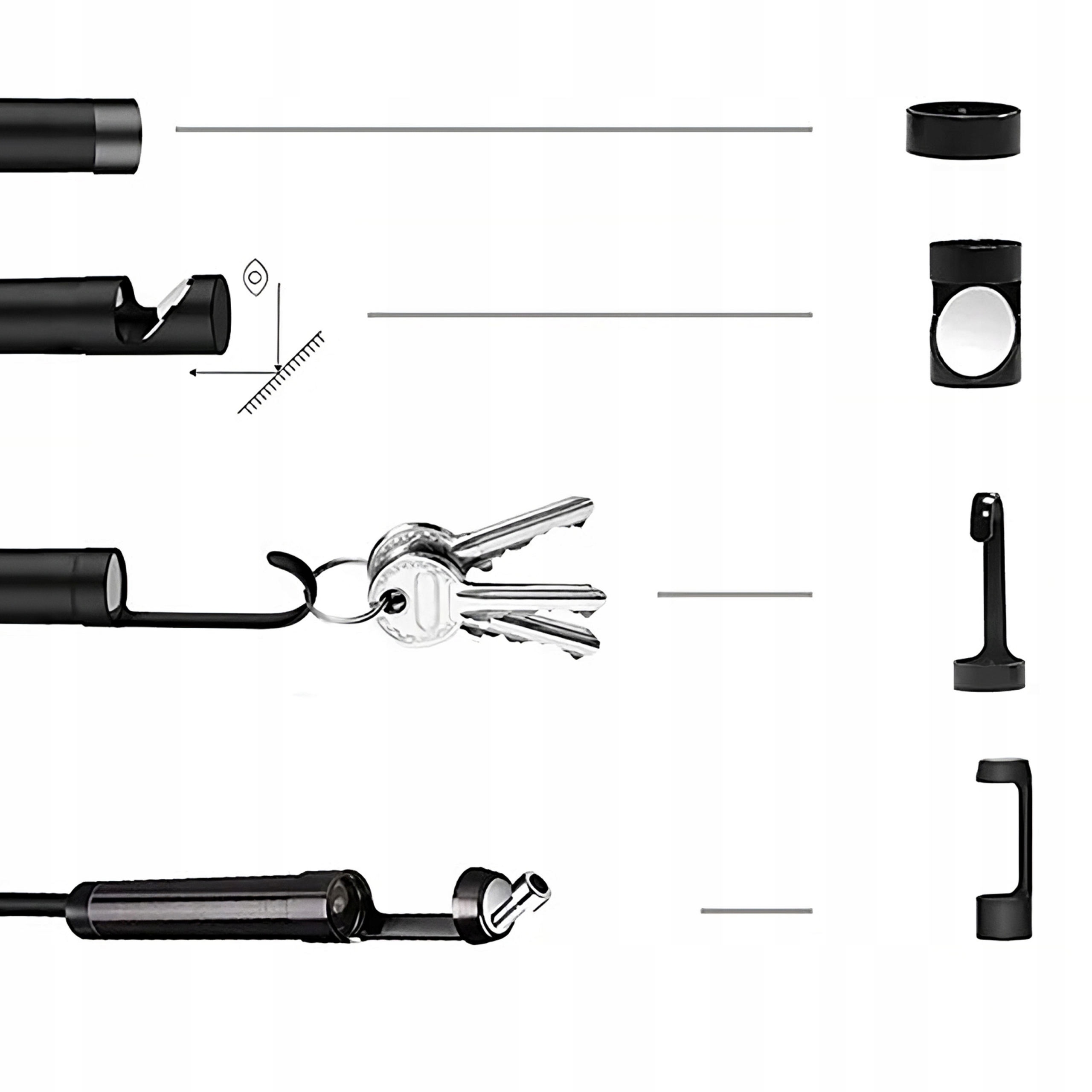 Ендоскопічна камера дозволяє ретельно діагностично ставитись до проблем, наприклад У установах з водою та каналізацією, автомобілями тощо. Завдяки цьому ви можете швидко знайти несправності та перейти до ремонту. Завдяки доданим аксесуарам перспективи ще більші. З кінцем з гачком ви піднімемо клавіші, що впали в недоступне місце, і завдяки Przybor з магнітом, скинутий гвинт перестане бути вашим турботою.