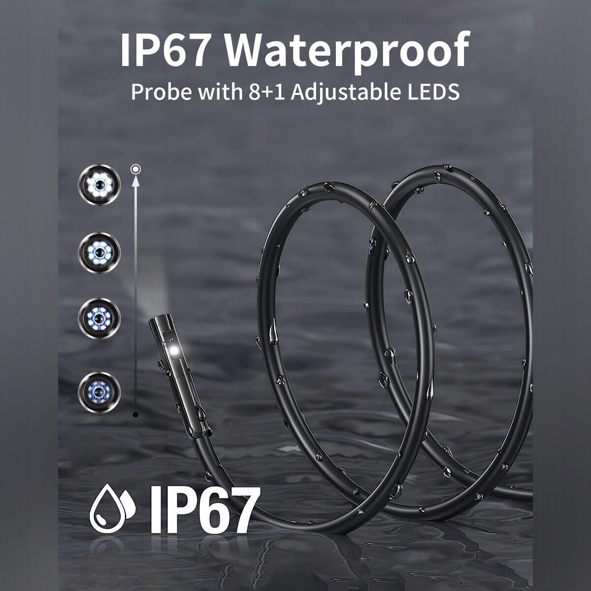 ● Гнучка, м'яка змія -кабель: цей ендоскоп - це портативна, ручна система відеокондоскопа з м'якою гнучкою вступною трубою. Шланг можна вільно відрегулювати в цьому напрямку, завдяки якому він досягає місця, яке ви хочете перевірити. Водонепроникна ендоскопічна камера може ефективно виявити підводне середовище (ПРИМІТКА: Ендоскоп не може бути використаний під водою більше півгодини). тощо