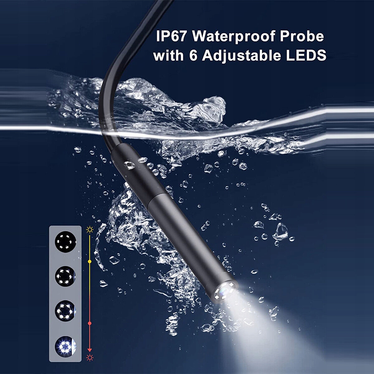 ● Гнучка, м'яка змія -кабель: цей ендоскоп - це портативна, ручна система відеокондоскопа з м'якою гнучкою вступною трубою. Шланг можна вільно відрегулювати в цьому напрямку, завдяки якому він досягає місця, яке ви хочете перевірити. Водонепроникна ендоскопічна камера може ефективно виявити підводне середовище (ПРИМІТКА: Ендоскоп не може бути використаний під водою більше півгодини). тощо