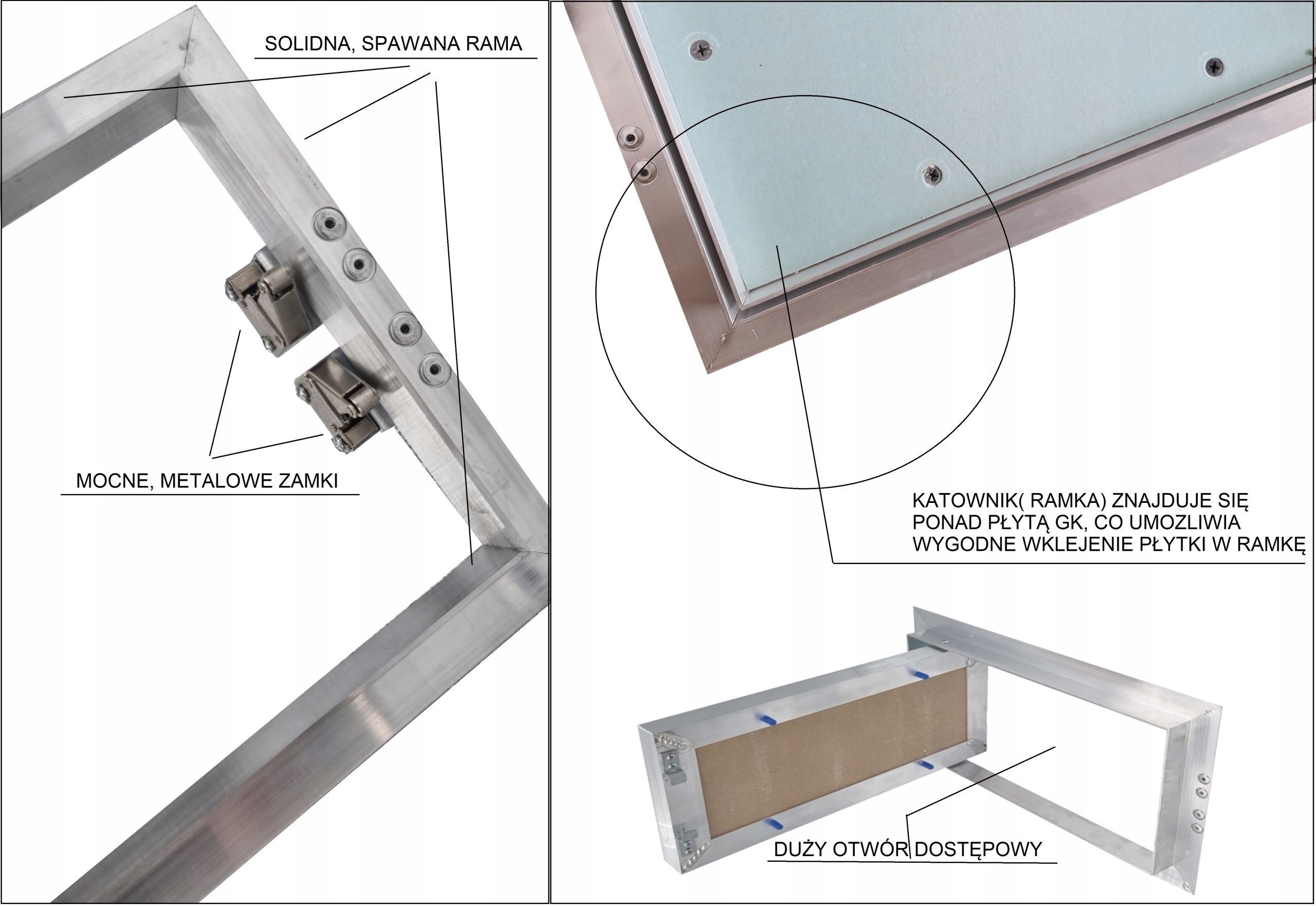 - Інспекційні двері, які ми пропонуємо, виступають як маска аудиту. Увімкніть естетичне маскування ревізійних отворів, розташованих переважно на стіні.