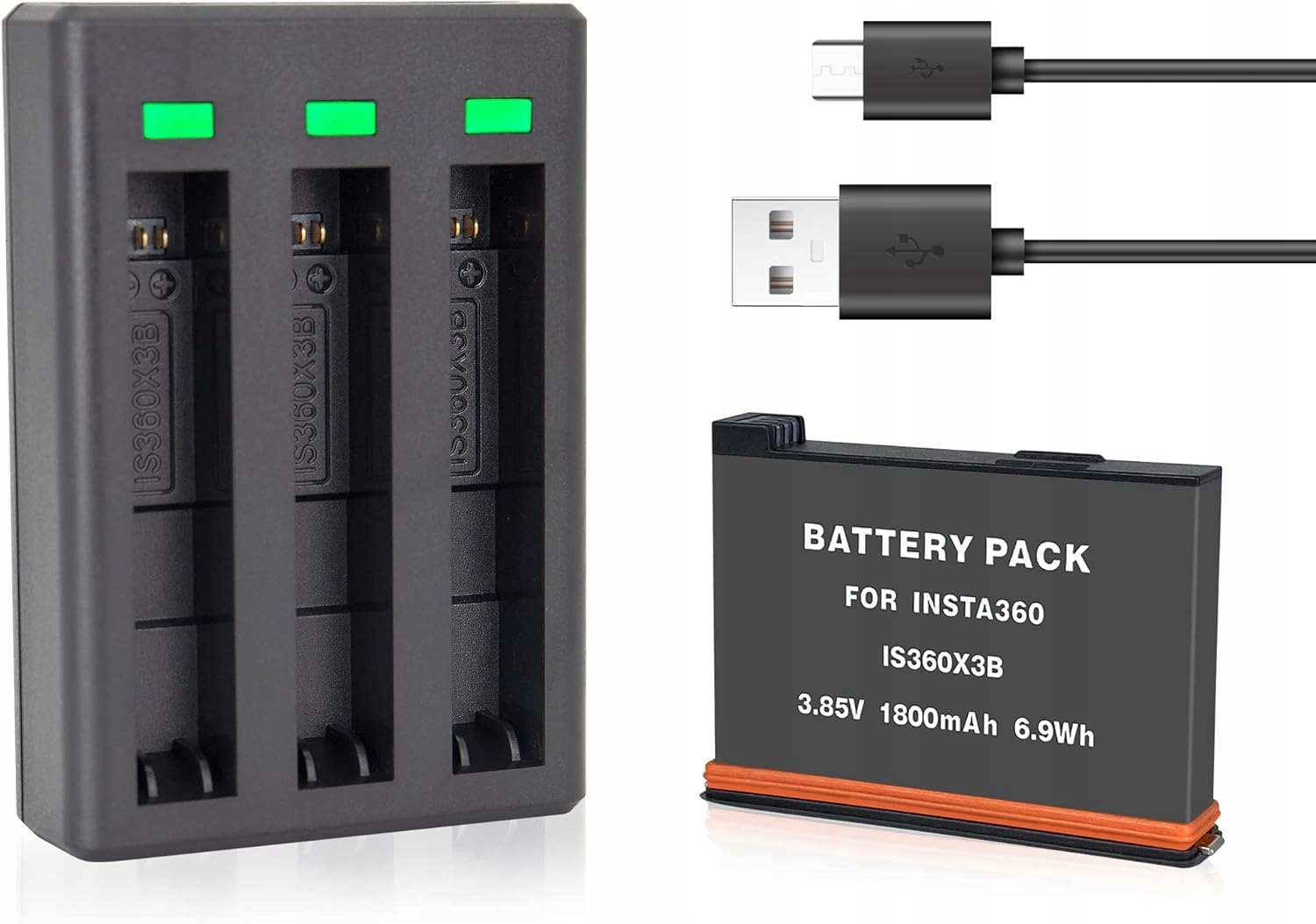 Світлодіодний зарядний пристрій + 2x акумулятор акумулятор 1800 мАг для Insta360 x3