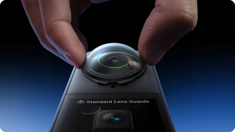 Після встановлення обкладинок камера Insta360 X5 автоматично переходить у режим захисту лінз, що полегшує запис без додаткових налаштувань.