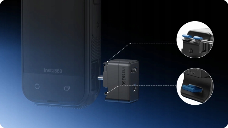 Мікрофонний адаптер дозволяє підключати зовнішній мікрофон до камери Insta360 X5, забезпечуючи чисті та чіткі аудіозаписи. Конструкцію було адаптовано до камери, щоб залишатися непомітною на 360° знімках.
