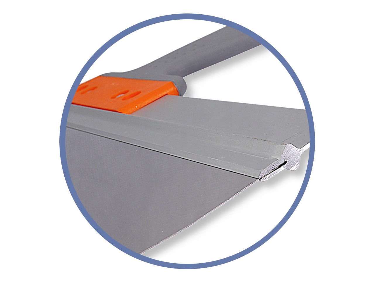 Інструмент має ергономічну прогумовану двокомпонентну ручку, яка добре лежить в руці, розвантажуючи руку під час роботи. /b>. Лезо шпателя розміщене в алюмінієвій рукоятці, яка міцно кріпиться до ручки за допомогою заклепок, що забезпечує рівномірний знос робочої частини.