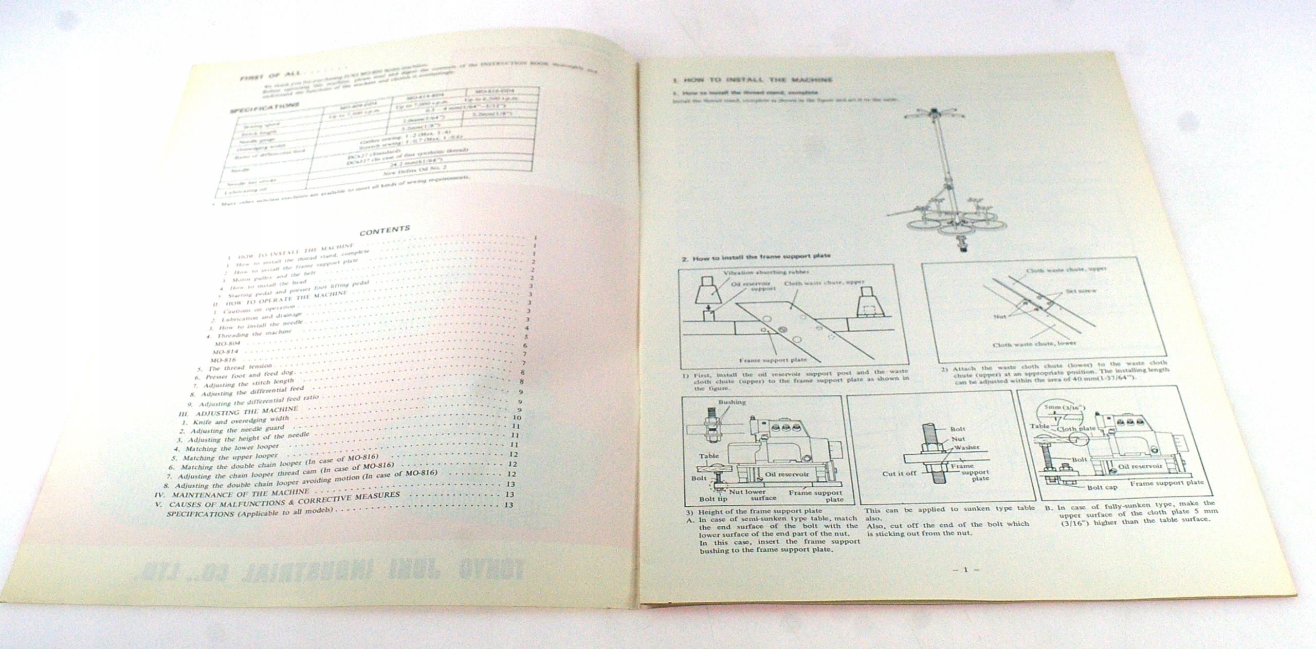 JUKI MO-804 814 816 Посібник користувача швейної машини, Tokyo Juki Industrial, 1970-ті роки, дуже хороший стан, англійська мова, 29,5 см.