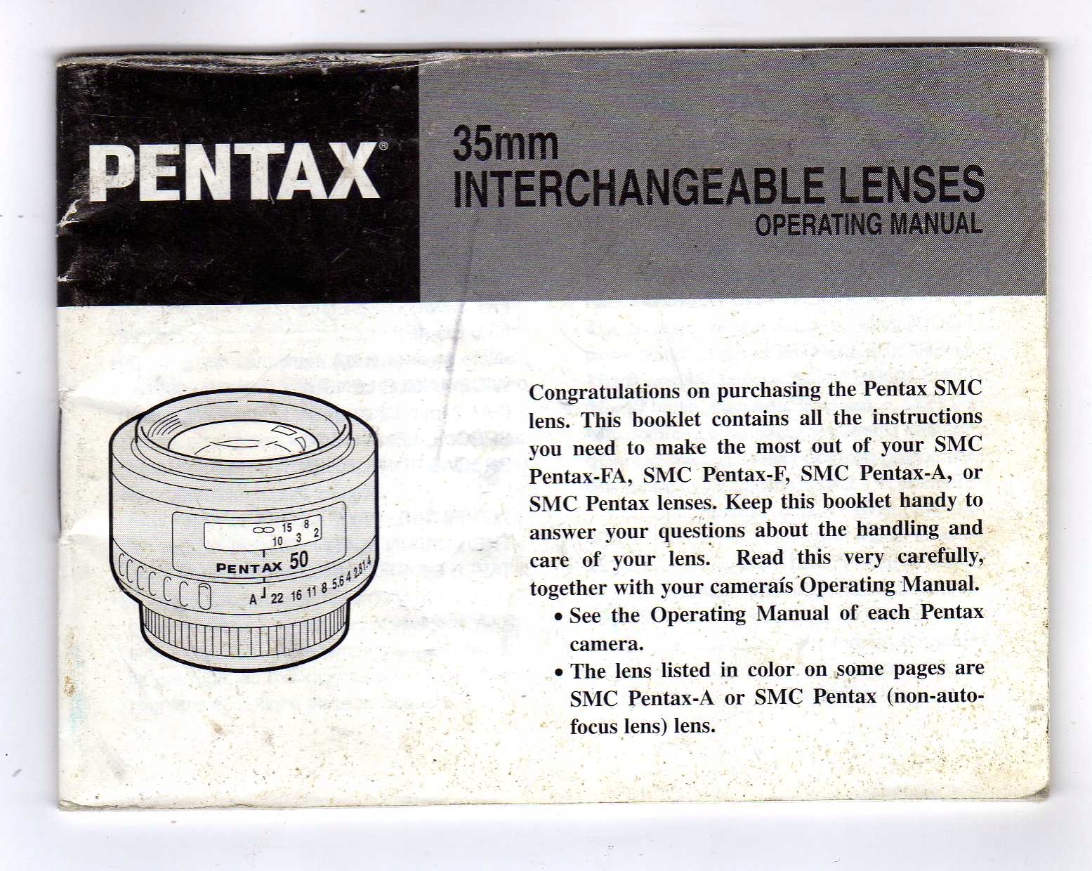 ІНСТРУКЦІЯ ЗМІННИХ ОБ'ЄКТИВІВ PENTAX 35 MM АНГЛ