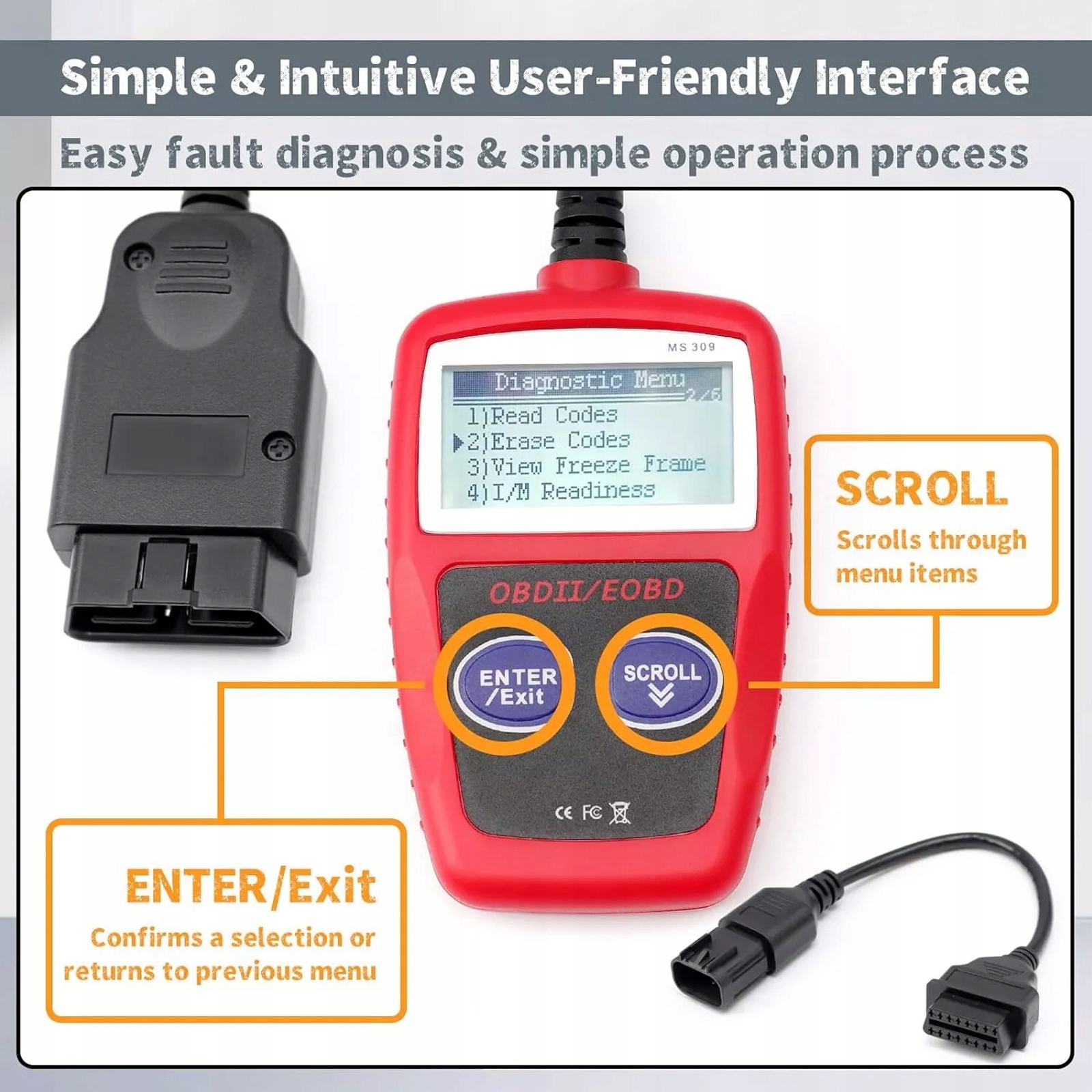 Зчитувач коду Scan MS309 OBD2 + 8-контактний адаптер Polaris – швидка діагностика та виправлення