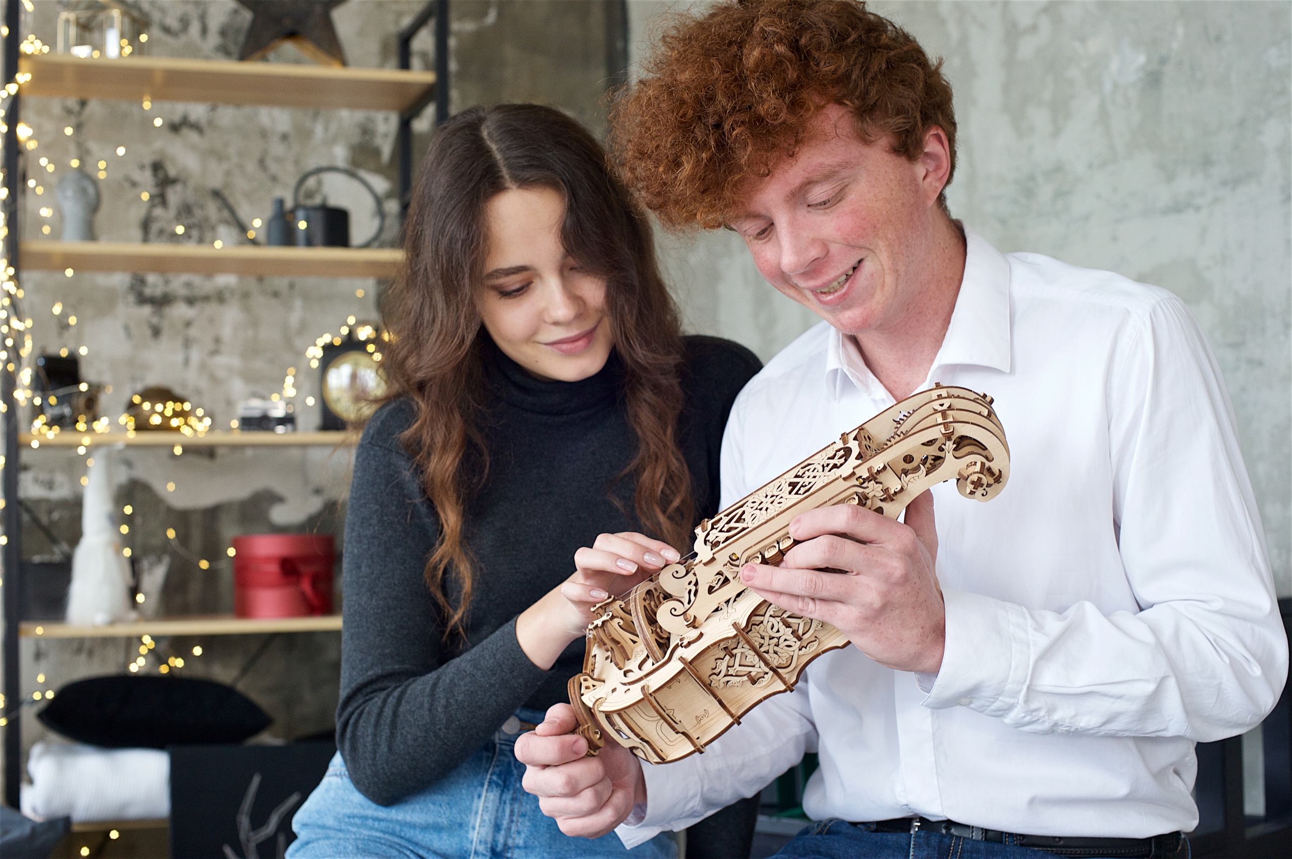 Ми визнаємо це... нас надихнули середньовічні лютієри. Тому, збагативши Hurdy Gurdy сучасними інженерними ідеями, ми створили першу в світі механічну музичну модель і справжню перлину колекції. Це самий незвичайний набір механічних моделей: самозбірка, іграшка і повноцінний музичний інструмент. Просто створіть власний музичний інструмент і відчуйте себе Страдіварі. Стань справжньою зіркою та виступай зі своїм Hurdy Gurdy для своїх близьких і друзів!