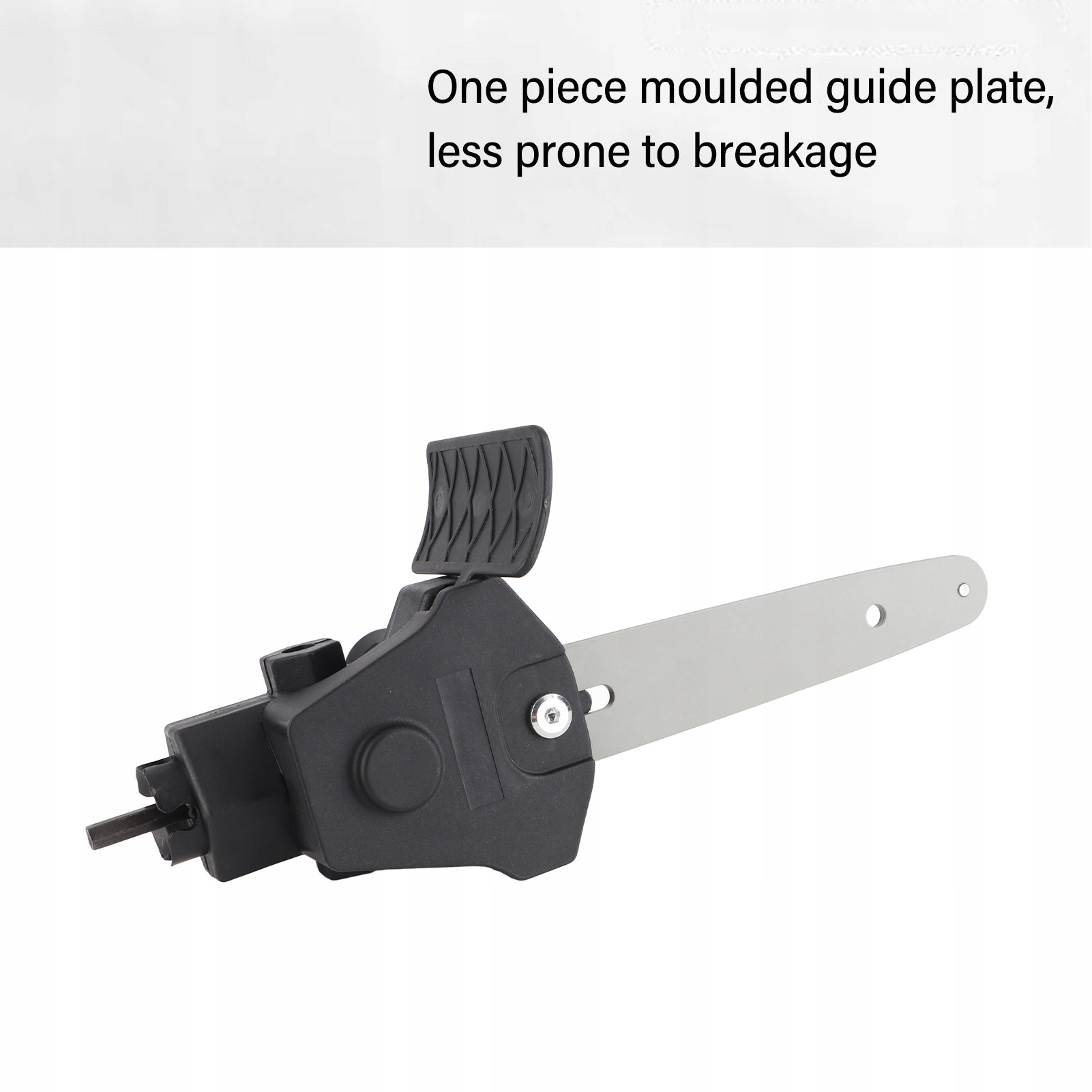 5. Висока сумісність: Інструмент для модифікації електричної ланцюгової пилки — це універсальний інструмент, який дозволяє перетворити вашу електродриль на бензопилу. Адаптер сумісний із більшістю електричних дрилів і може використовуватися для різних видів різання деревини.
