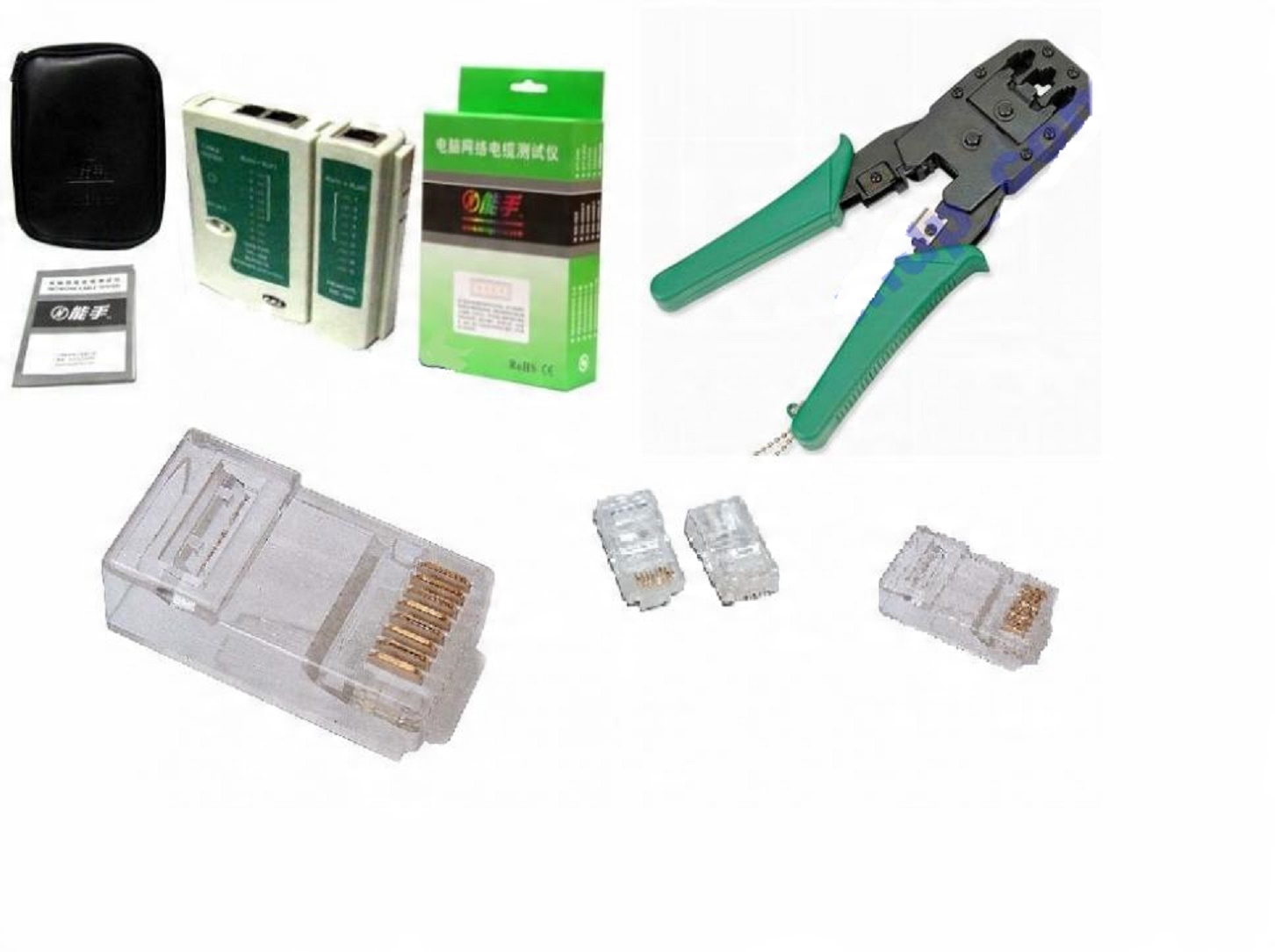 ІНСТРУМЕНТ ДЛЯ ОБЖИМУВАННЯ + ТЕСТЕР + 50 ВИЛК 8p8c + ЗНІМАННЯ ІЗОЛЯЦІЇ