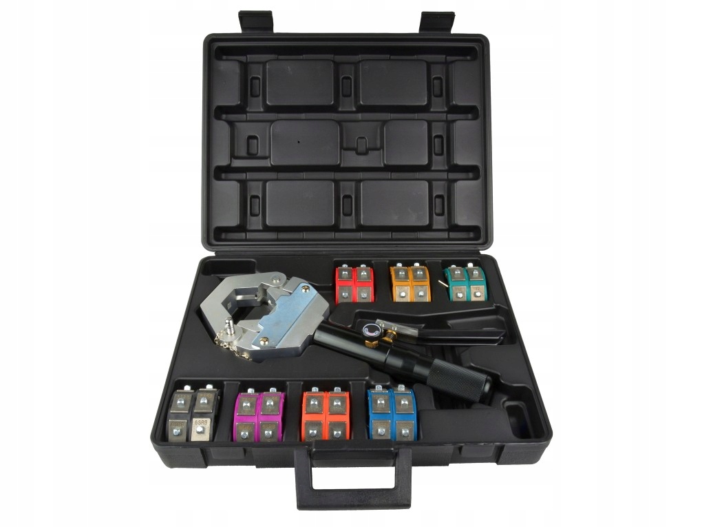 Обтиск кінців шлангів системи кондиціонування повітря забезпечує швидке й точне обтискання кінців (наконечників шлангів системи кондиціонування повітря). У комплект входять хомути для шлангів різного діаметру. Все поставляється в міцній і естетичній валізі, тому його можна використовувати як в майстерні, так і в польових умовах.
