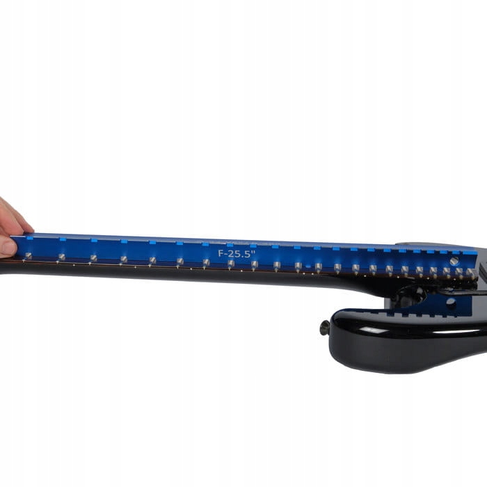 ДОСКОНАЛІСТЬ, Вбудована в дизайн із більшою довжиною та розрізами, які охоплюють БІЛЬШУ ГІТАРУ. Перевірте площину грифа, щоб допомогти з різьбленням, за допомогою наших вирізів, які покривають 17,6" грифа та торкаються грифа між 22 слотами для ладів, що більше, ніж у більшості інших продуктів на ринку. Ви також можете використовувати його для вимірювання рельєфу шиї, щоб дізнатися, чи потрібно відрегулювати стержень.