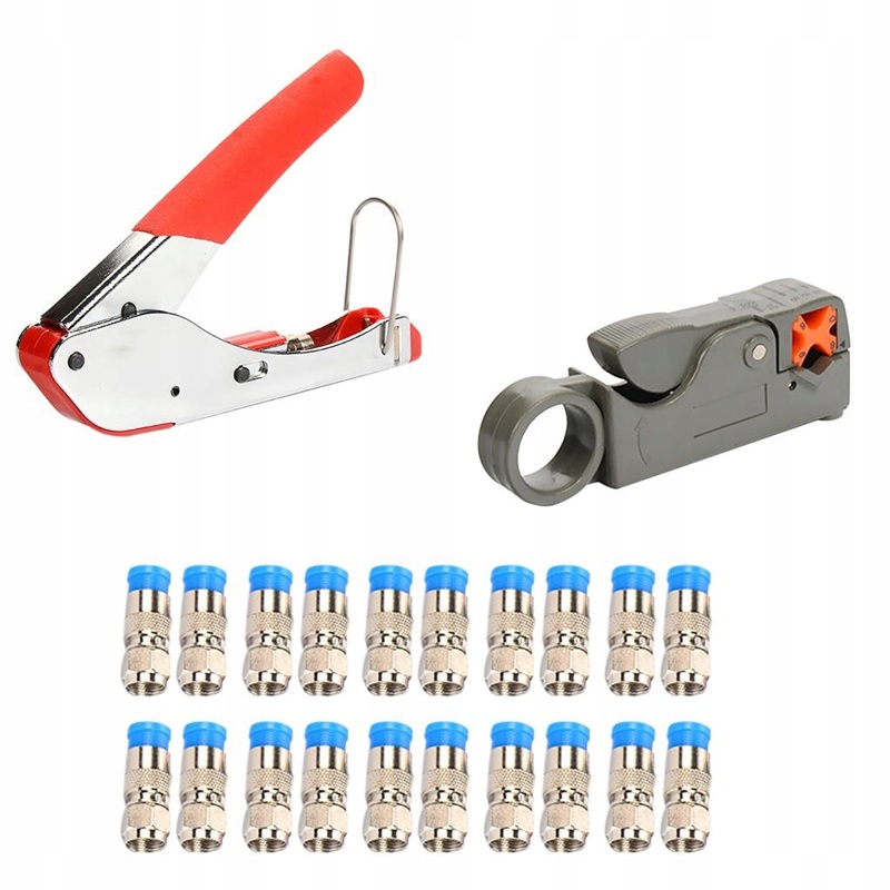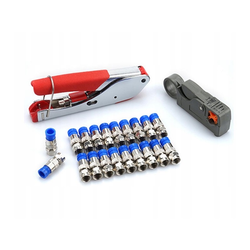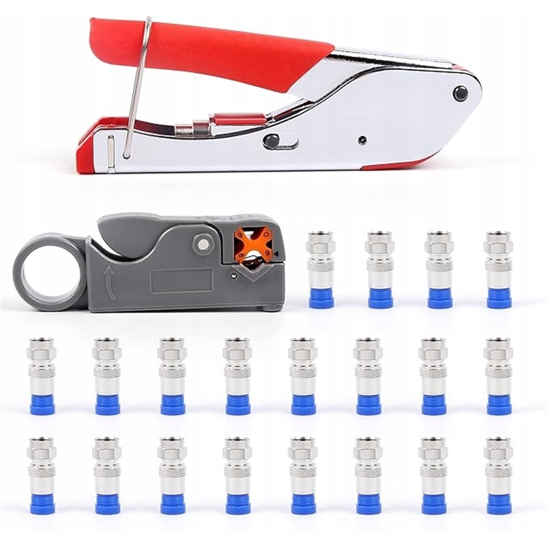 【Пакет】Набір для ремонту коаксіального кабелю включає коаксіальний обжим, стриппер із коаксіальні та 20 F компресійні з’єднувачі, цей набір інструментів для стиснення є компактним рішенням, легким і легким для транспортування!