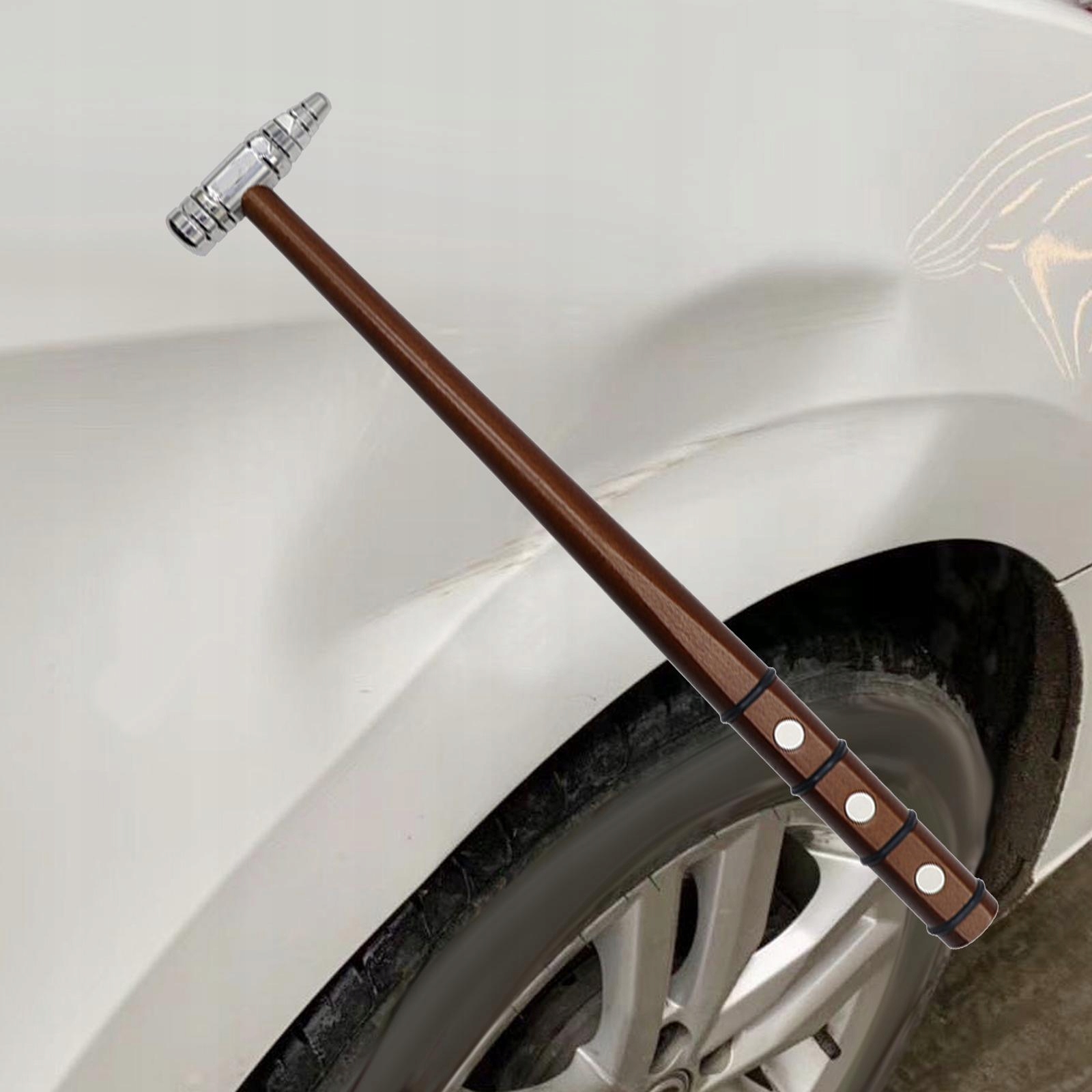 [Матеріал]Цей молоток для ремонту вм’ятин на автомобілі має дерев’яну ручку та металевий наконечник, що забезпечує його довговічність і ефективність при вм’ятинах на кузові автомобіля ремонт.