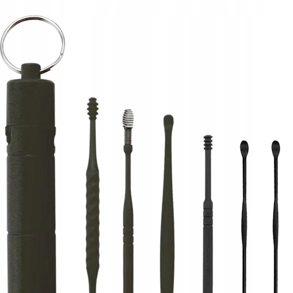 Інструмент для видалення вушної сірки, 7 шт., гладкий багаторазовий інструмент із нержавіючої сталі, чорний 7