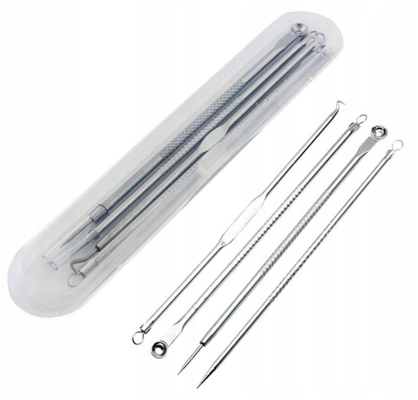 Набір ложок і косметичних інструментів для видалення чорних крапок, чорних крапок та інших недоліків шкіри. У набір входять різноманітні наконечники - петельки, шпажки та ложечки, які дозволяють точно та гігієнічно очистити обличчя.