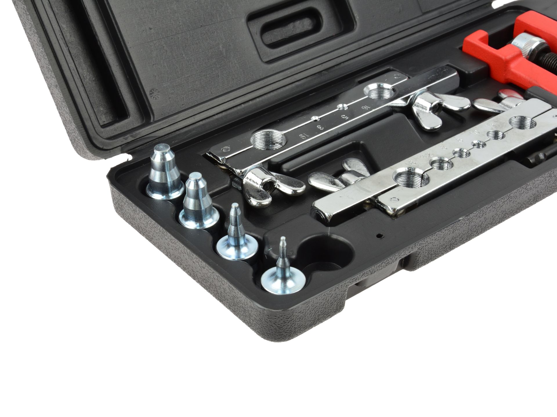 Набір для обтиску гальмівної та паливопроводів. Підходить для різання та розширення мідних, латунних і алюмінієвих трубок і кабелів із товщиною стінок до 1 мм.