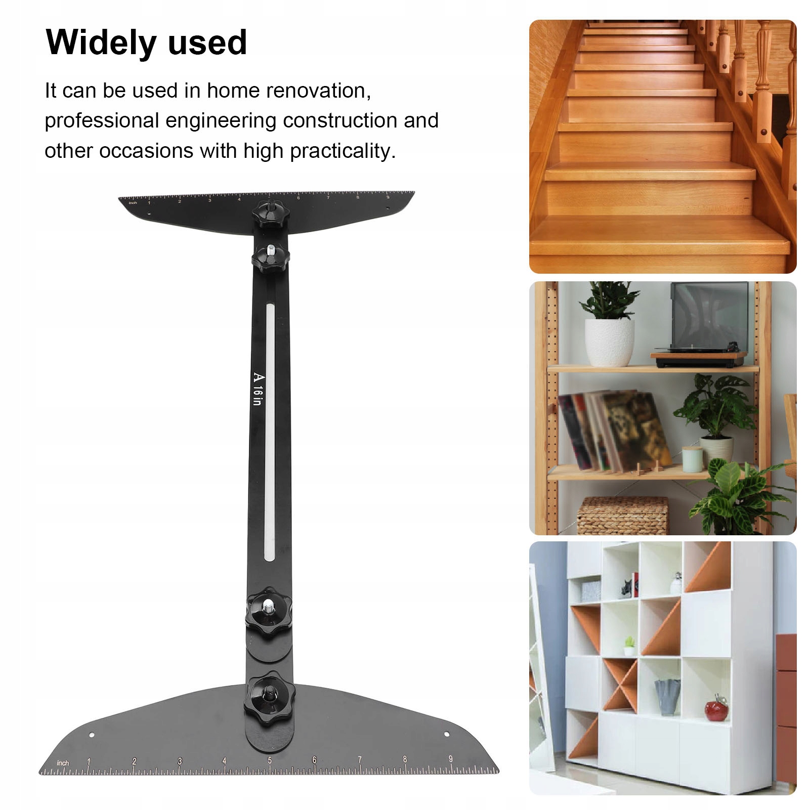 2. Матеріал преміум-класу: цей інструмент для вимірювання маршів сходів виготовлено з високоякісного алюмінієвого сплаву, який має високу міцність і надійність і може справлятися з тиском різних середовищ, щоб підтримувати тривалий термін служби.