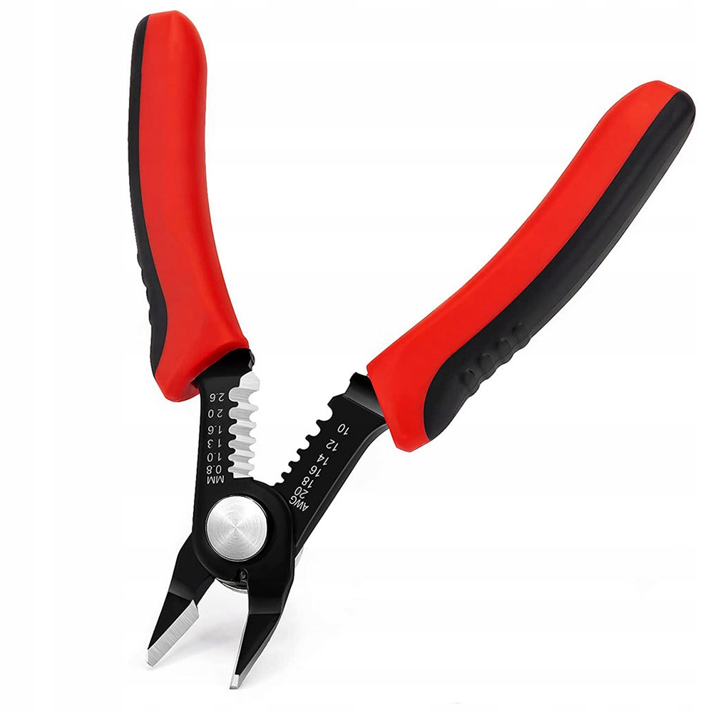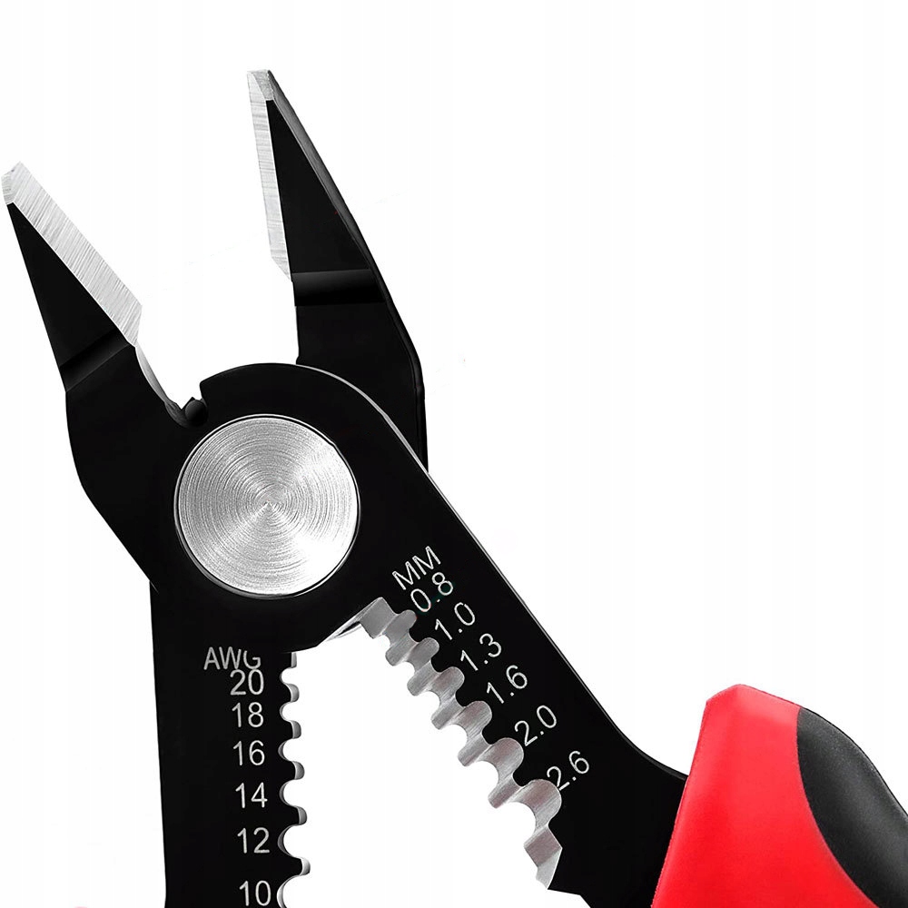Спеціально вигнуті краї губок полегшують точні фронтальні розпили. Кліщі додатково оснащені в корпусі знімачами ізоляції для проводів розміром 0,8–2,6 мм² (20–10 AWG).