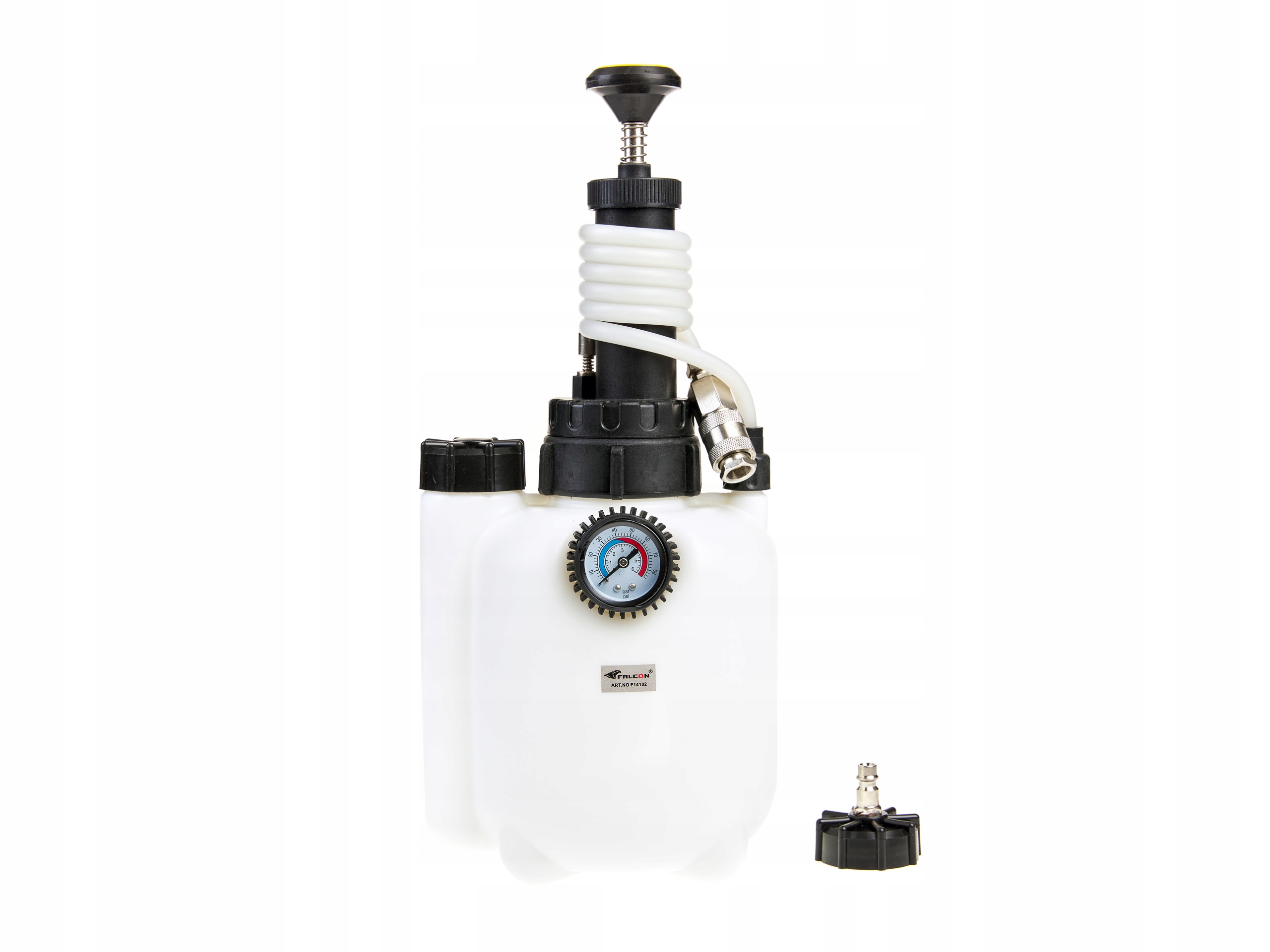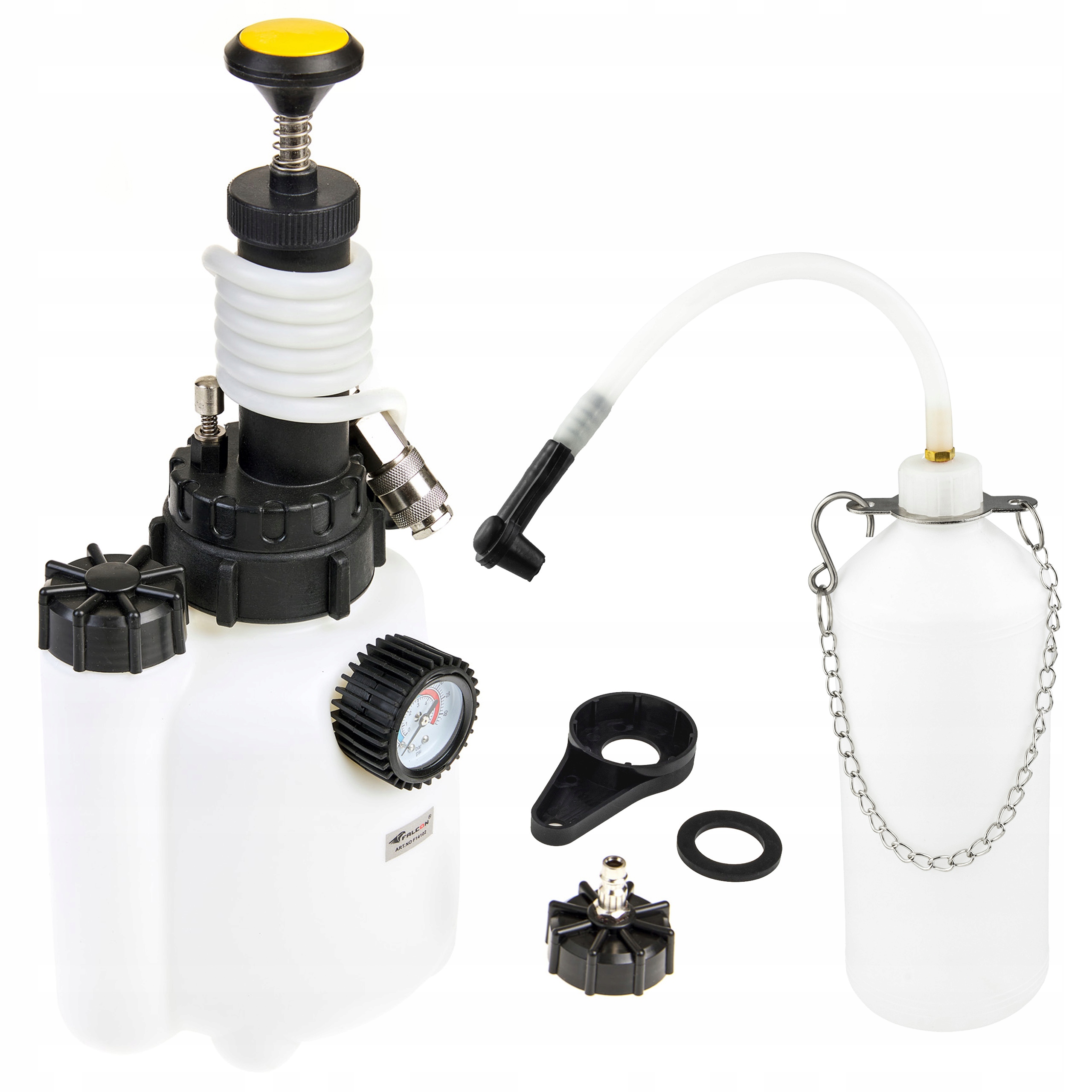 Пристрій для зміни тиску і прокачування гальмівної рідини з ручним насосом. Дозволяє легко та швидко замінити та прокачати гальмівну рідину однією людиною. Підтримує гальмівні системи з системами ABS або ESP і електрогідравлічні гальма.