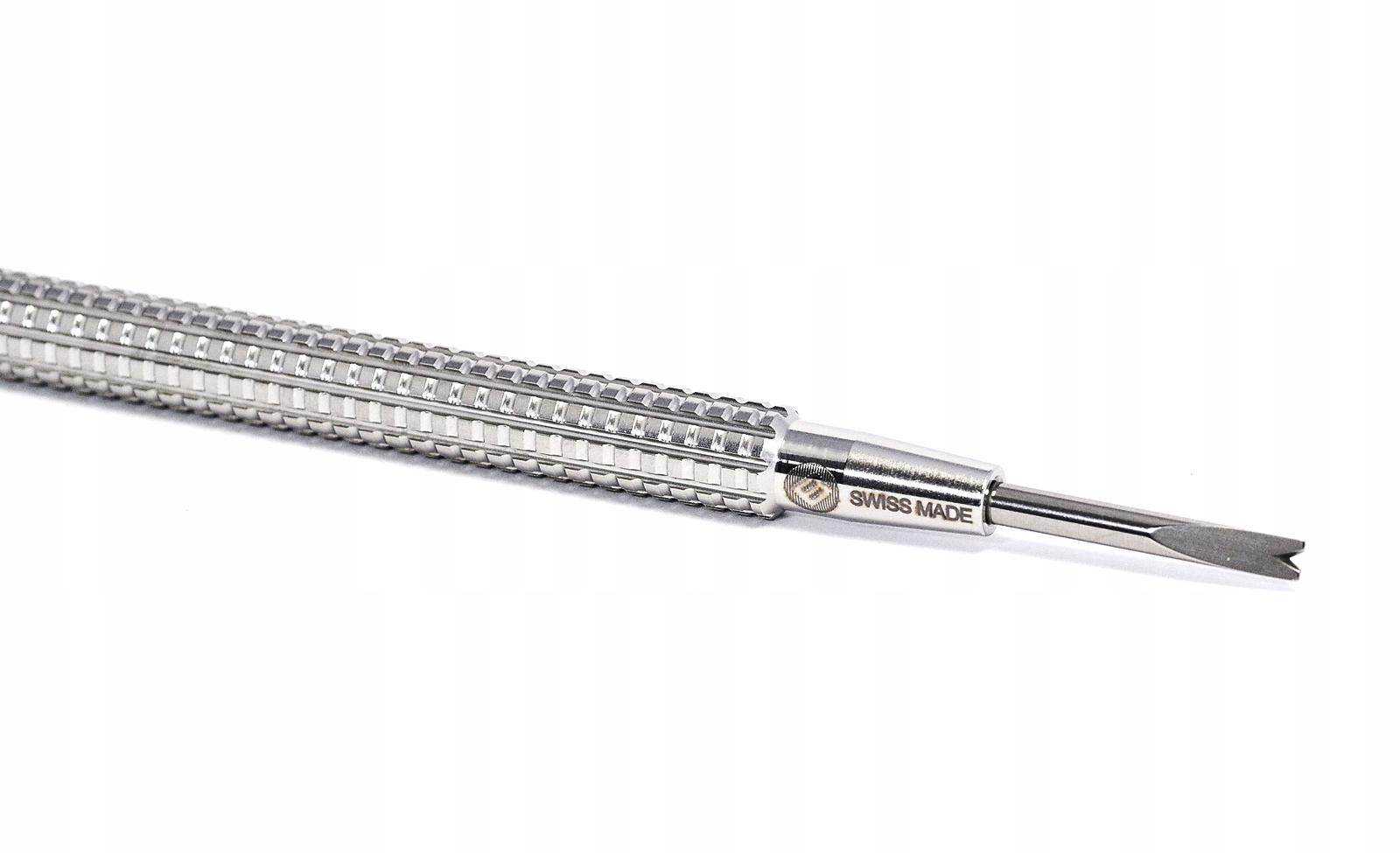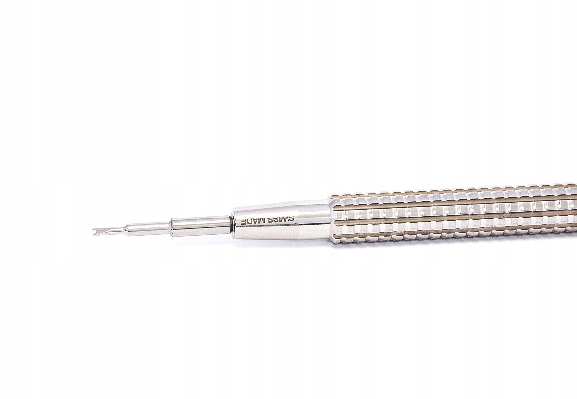 Наконечники з високоякісної сталі - змінні. Спеціально профільоване весло та шпилька (голка) ідеально підходять для зміни ремінців та браслетів. Ребриста поверхня забезпечує міцне захоплення, зводячи до мінімуму ймовірність подряпати корпус годинника.